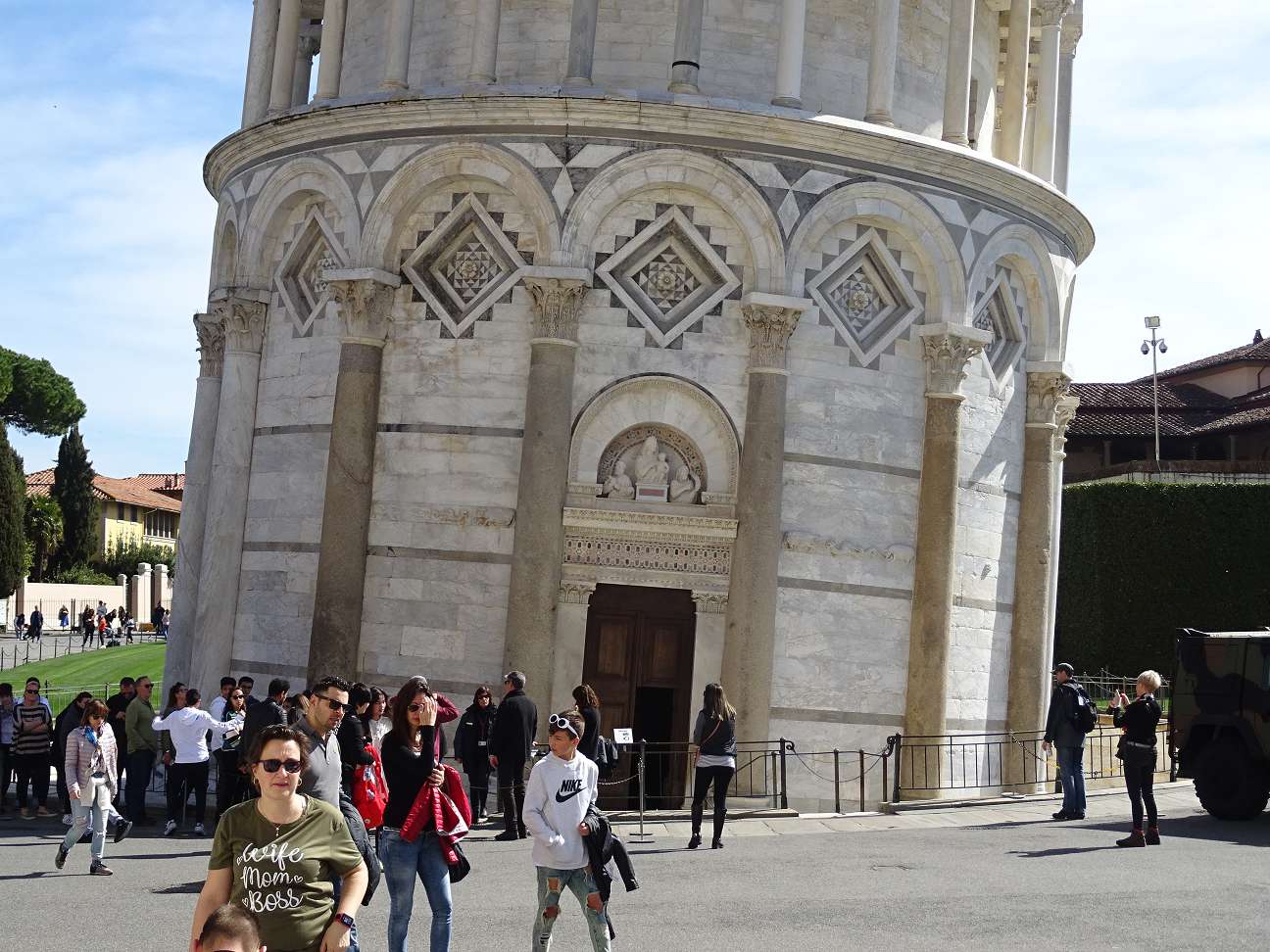 Die drei Hauptgebäude des Ensembles sind nicht nur im Ganzen imposant, sondern beeindrucken auch durch ihre filigranen Details. Das Dach des Baptisteriums wurde übrigens mit zwei verschiedenen Materialien gedeckt: landeinwärts mit Kupferplatten, seeseitig mit Ziegeln. Die Ziegel halten besser dem schlechten Wetter stand, welches meistens vom Meer herüber zieht.