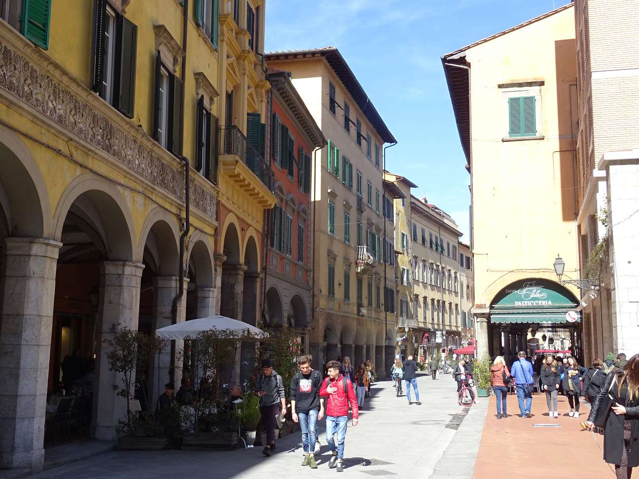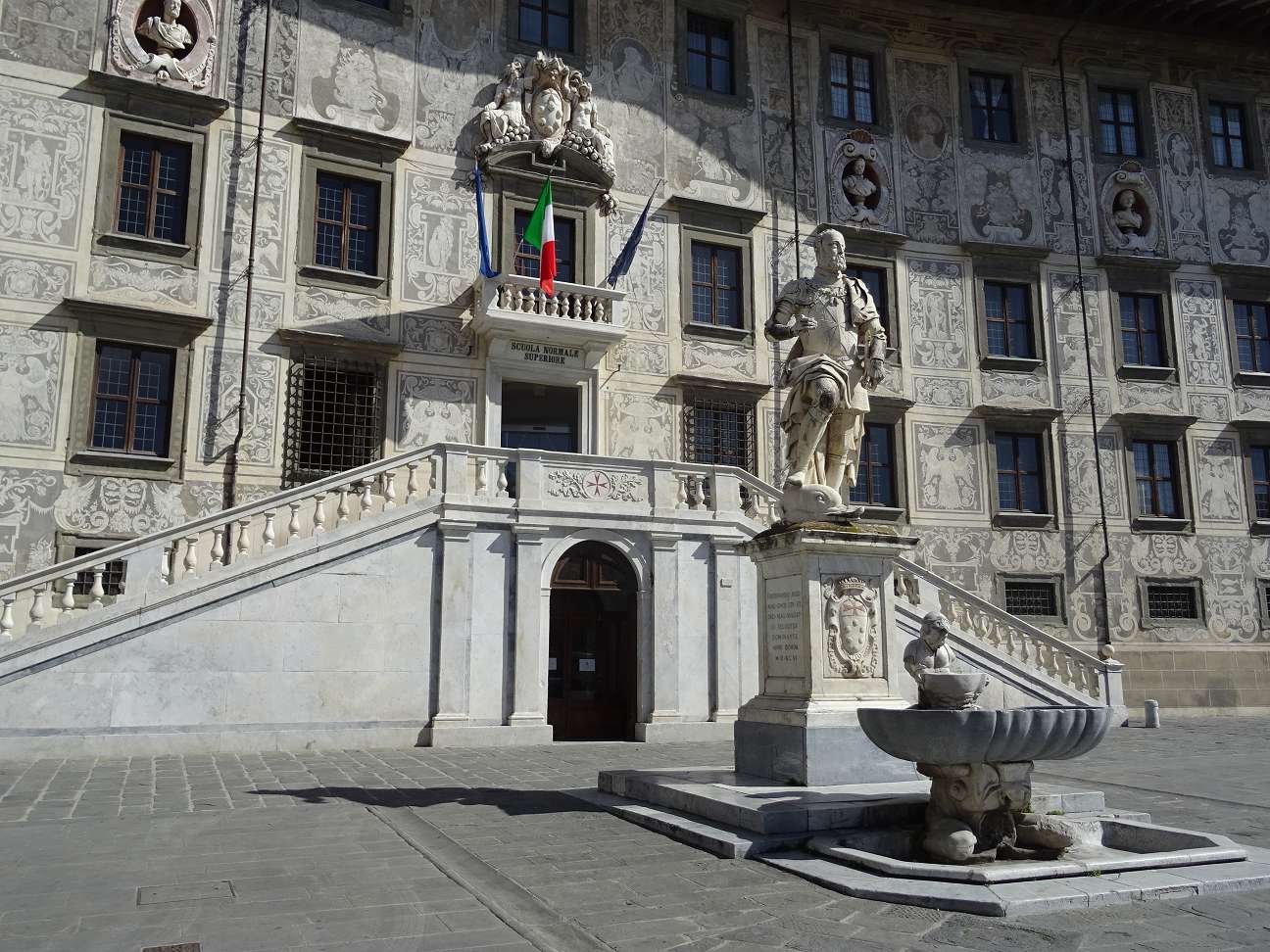Nun schließt sich ein Stadtbummel durch die Altstadt von Pisa an, entweder durch die Fußgängerzonen oder durch die Gassen. Unbedingt einen Abstecher muss man zur Piazza dei Cavelieri machen. Dort ist wohl das schönste Gebäude in Pisa zu finden, die Scuola Normale Superiore. Die gesamte Fassade ist wunderschön bemalt und mit Büsten verziert. Davor steht ein Brunnen. Der großzügige Platz wird aber auch von Palästen und Kirchen umrahmt.