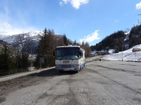 Auf der ersten Raststätte hinter der Schweizer Grenze übernachteten wir, kostenlos. Wie sich auf der Durchfahrt durch die Schweiz herausstellte, werden normalerweise auf den Parkplätzen der Raststätten 15,-€ für die Zeit von 19-5 Uhr fällig. Da hatten wir nochmal Glück.