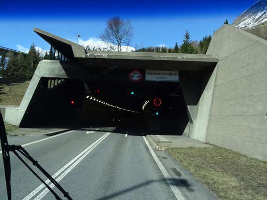 Die Durchfahrt durch den Gotthard-Tunnel ist in der Vignette/Schwerverkehrsabgabe enthalten, kostet also nicht extra. Als wir nachsahen, wie wir am besten über die Alpen kommen, blieb nur der Gotthard-Tunnel. Auf der Strecke über Turin in die Schweiz liegen der Fréjus-Tunnel und der Mont Blanc-Tunnel. Beide dürfen nicht von Fahrzeugen mit Emissionsklasse 0 befahren werden. So blieb uns nur die Strecke mit dem Gotthard-Tunnel. Die Steigungen sind moderat, da war die Überquerung des Brenner wesentlich kniffliger. Der Gotthard-Pass ist bis Mitte Mai geschlossen.