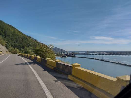 Nachdem wir nun genug vom „EisernenTor“ gesehen hatten, setzten wir unsere Fahrt zum Stauwerk „Eisernes Tor 1“ fort. In der Mitte des Staudammes befindet sich die Grenze zwischen Rumänien und Serbien. Wer rüber will, muss durch die Zollstation.