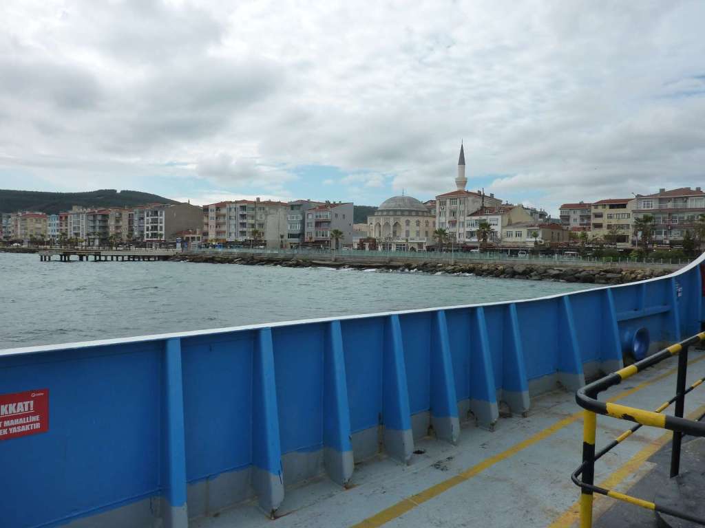 Die Fähre von Eceabat nach Canakkale kostet ca. 6,-€ mit dem Wohnmobil und die Überfahrt dauert eine gute viertel Stunde. Man überquert damit die Dardanellen, wie diese Meerenge heißt, an so ziemlich der engsten Stelle.