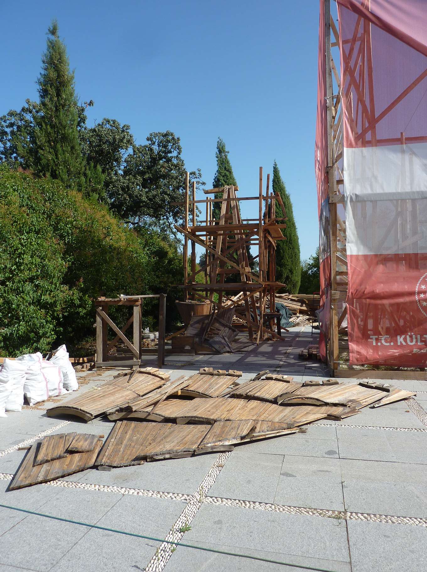 Die Ausgrabungsstätte des alten Troja wird mit Hilfe eines Rundweges auf Holzbrettern erkundet, Informationstafeln liefern den Besuchern alles, was man zu dem Thema weiß.