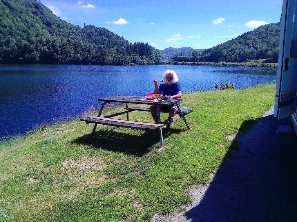 Eine weitere schöne Stadt ist Flekkefjord, die einen Besuch lohnt. Vorher legten wir eine Kaffeepause auf dem wunderschön gelegenen Rastplatz am Ufer des Skolandsvatnet, kurz hinter Lyngdal ein.