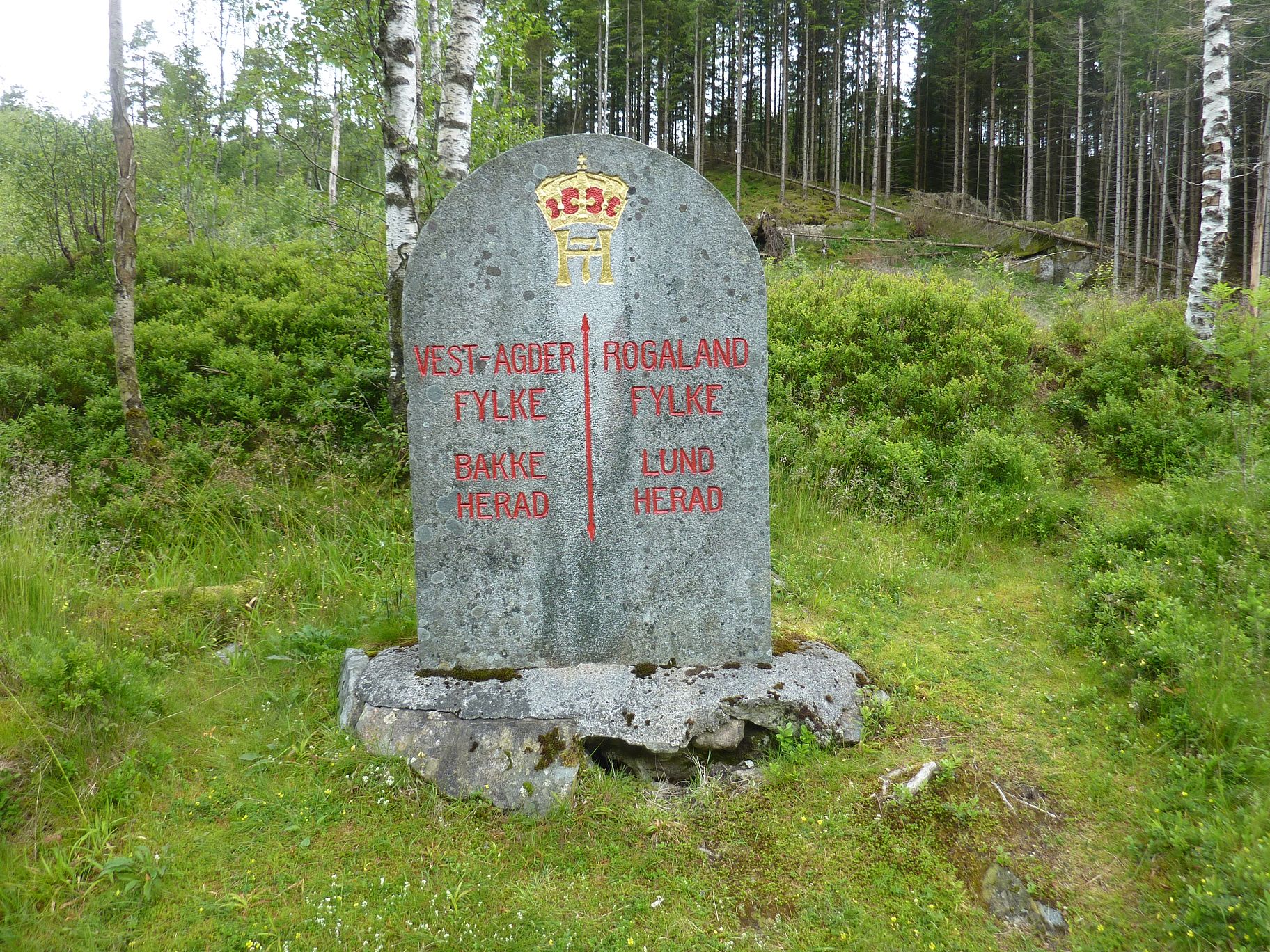 An manchen Stellen bieten sich tolle Aussichten auf den Fjord und den Rastplatz. Nach 1,2 km hatte ich den Scheitelpunkt erreicht, auf dem die Grenze zwischen den Bezirken Agder und Rogaland liegt.