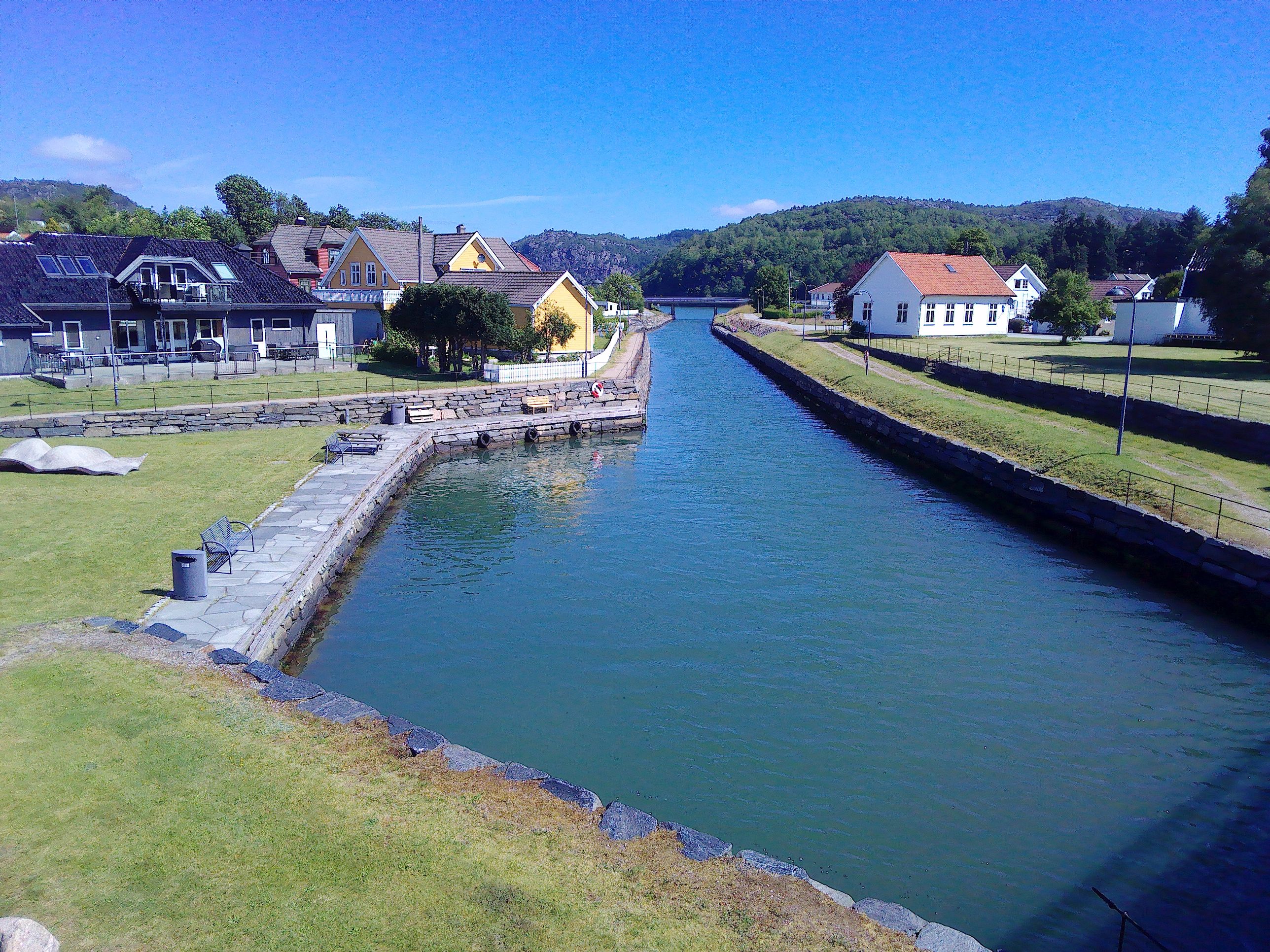 Da wir schon einmal einen Stopp in Spangereit eingelegt hatten, wollten wir uns den Ort ansehen. Wir überquerten einen kleinen Kanal, der die Nordsee mit einen See verbindet und bogen am zweiten Kreisverkehr Richtung Küste ab. Würde die norwegische Riviera, wie die Südküste genannt wird, irgendwo im warmen Süden Europas liegen, würden wir sofort dort hinziehen. Es ist einfach nur wunderschön hier. Die kleinen Holzhäuser, alles sehr gepflegt und sehr grün, das viele Wasser, die Felsenlandschaft, selten findet man solch eine abwechslungsreiche Landschaft. Allerdings ist es im Sommer sehr voll, vor allem an den touristischen Orten.