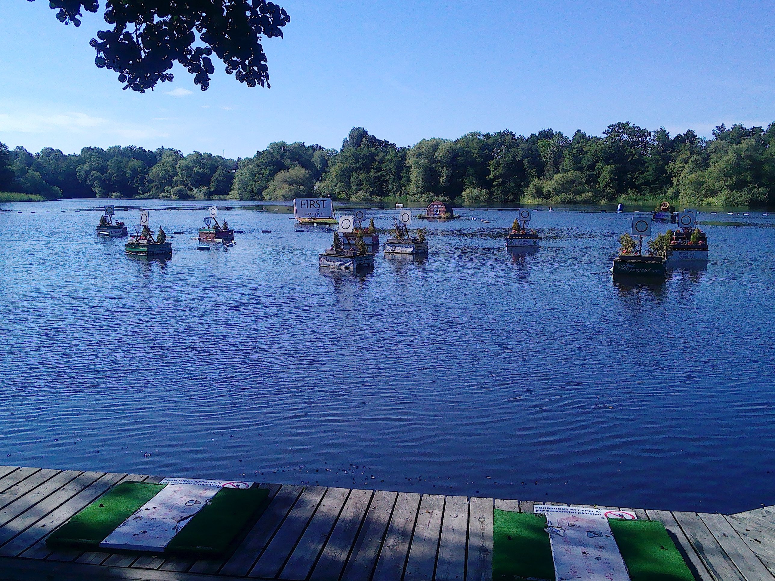 Die Bälle, die daneben gehen, fallen ins Wasser und werden durch eine schwimmende Barriere aufgehalten. Das Jackpot-Ziel schwimmt irgendwo weit vom Abschlag entfernt in der Flussmitte. Auf was man unterwegs alles so trifft, unglaublich.
