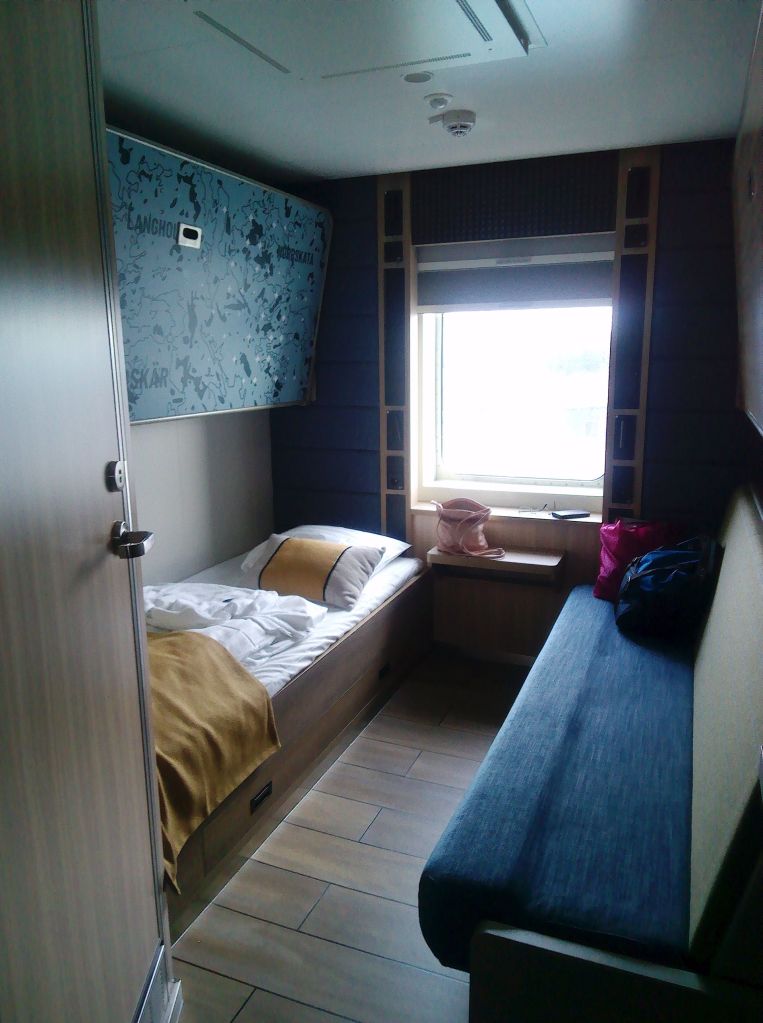 An Bord packten wir alles zusammen, was wir für die 8-Stündige Überfahrt brauchten, dann suchten wir unsere Kabine. Die Nummer steht auf dem Ticket, welches man beim Check-In erhält. Dies ist gleichzeitig der Zimmerschlüssel. Die Kabine ist ausreichend, mit großem Bad und eigenem WLAN. Was will man mehr?