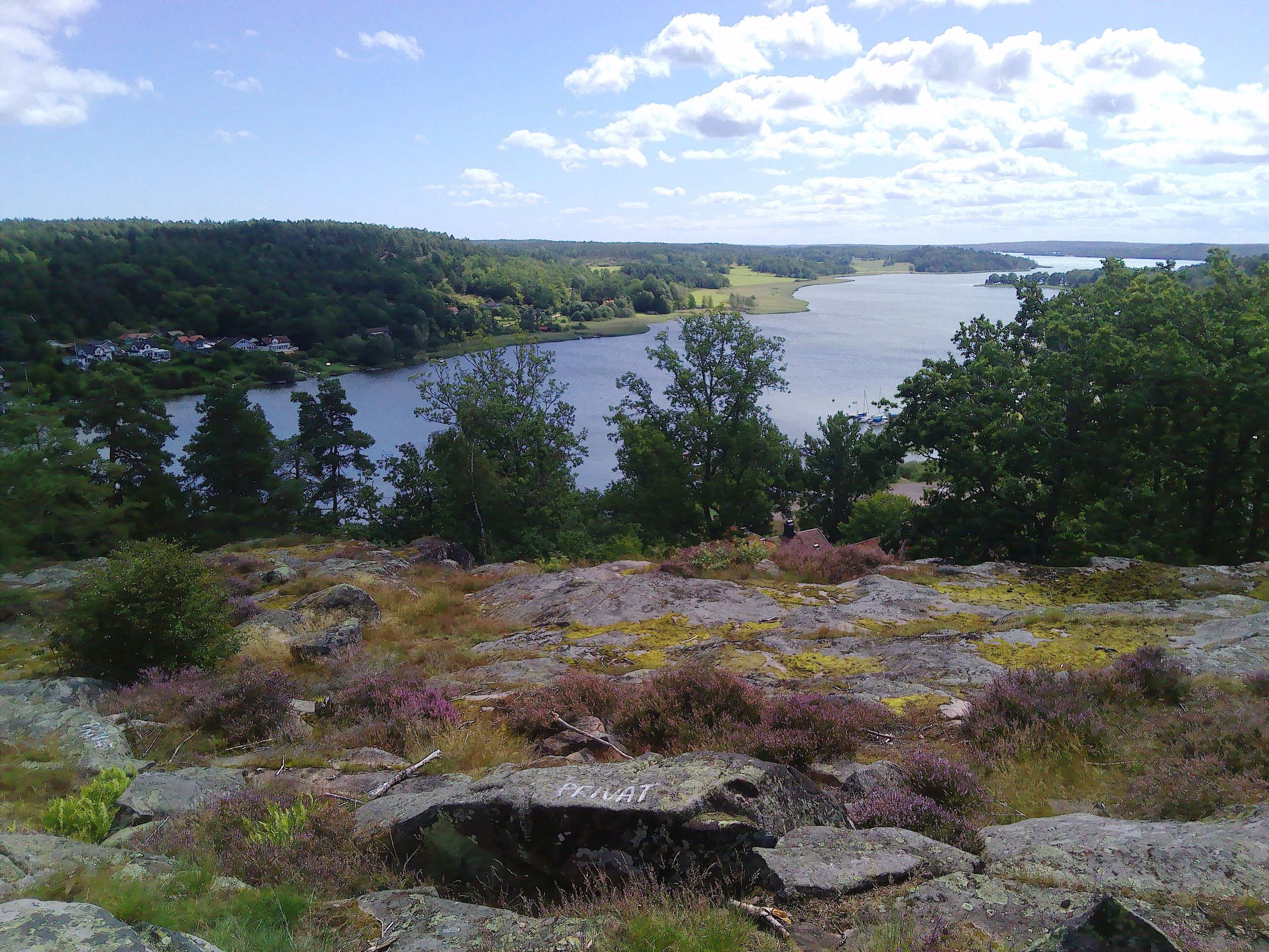 Gegenüber dem Picknickplatz liegt eine Privatinsel im Wasser, auf die eine Holzbrücke führt, sehr idyllisch. Es ist echt schön in Påskallavik.