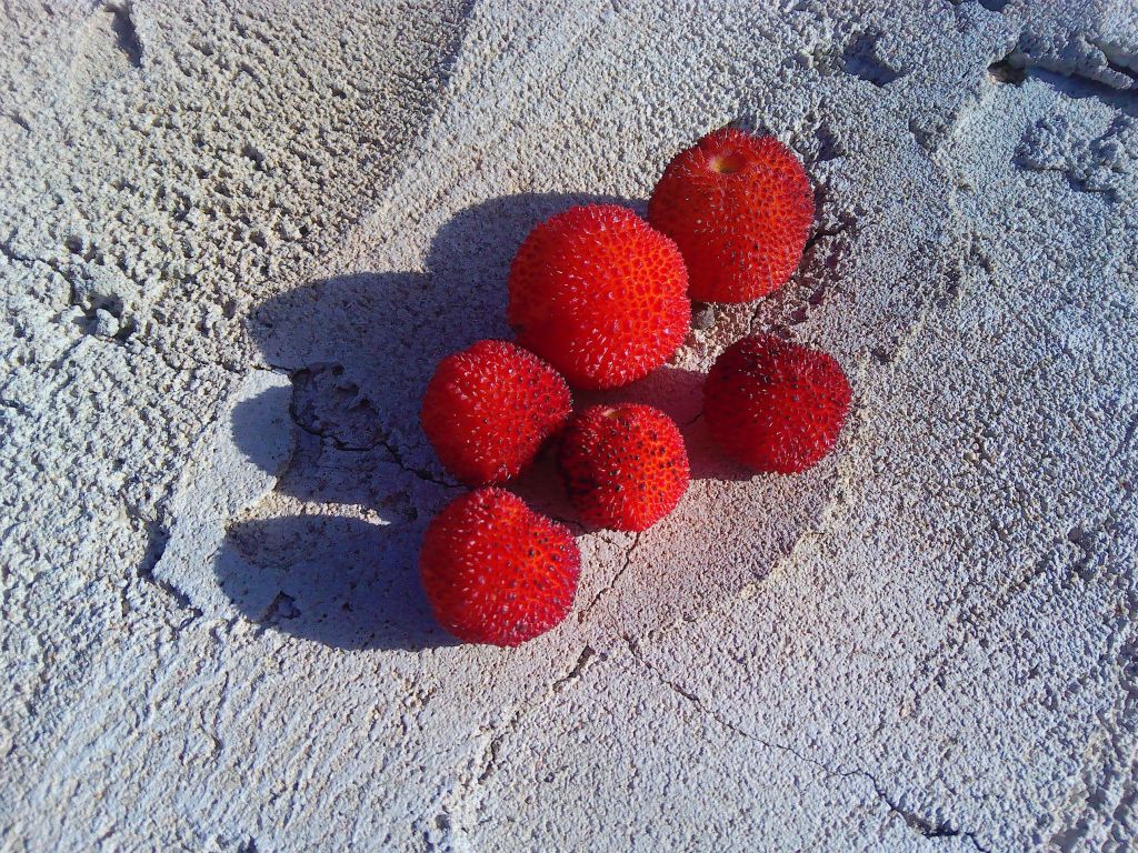 Überall wachsen die Erdbeerbäume mit den jetzt reif werdenden Früchten, die so lecker sind.