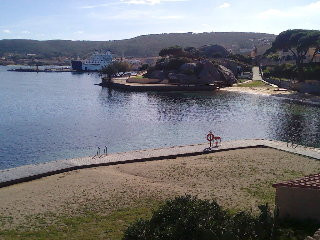 Von hier aus starteten wir einen Spaziergang durch den Ort. Zuerst immer am Wasser entlang: an der Marina, am Fähranleger, weiter die Promenade entlang, wo wieder schöne Felsformationen zu finden sind, bis hin zum Stadtstrand. Die Fähren pendeln oft zwischen Palau und La Maddalena. Das Wasser ist glasklar, sogar im Hafen ist es sauber.