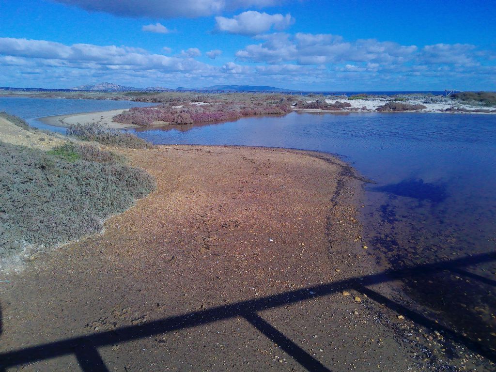 Zwischen den Parkplätzen, schön flach und frei, um von morgens bis abends die Sonne zu genießen, breiten sich alte Salinenbecken aus. Hier wird schon lange kein Meersalz mehr produziert.