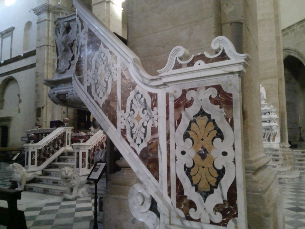 In der Kathedrale dominiert grauer Trachyt, ein Vulkangestein, welches aus einiger Entfernung wie Kalkstein aussieht. Einzelne Elemente, wie die Kanzel und der Altarraum, bestehen aus Marmor, der mit Marmorintarsien belegt ist. Diese stammen aus dem 12. Jahrhundert.