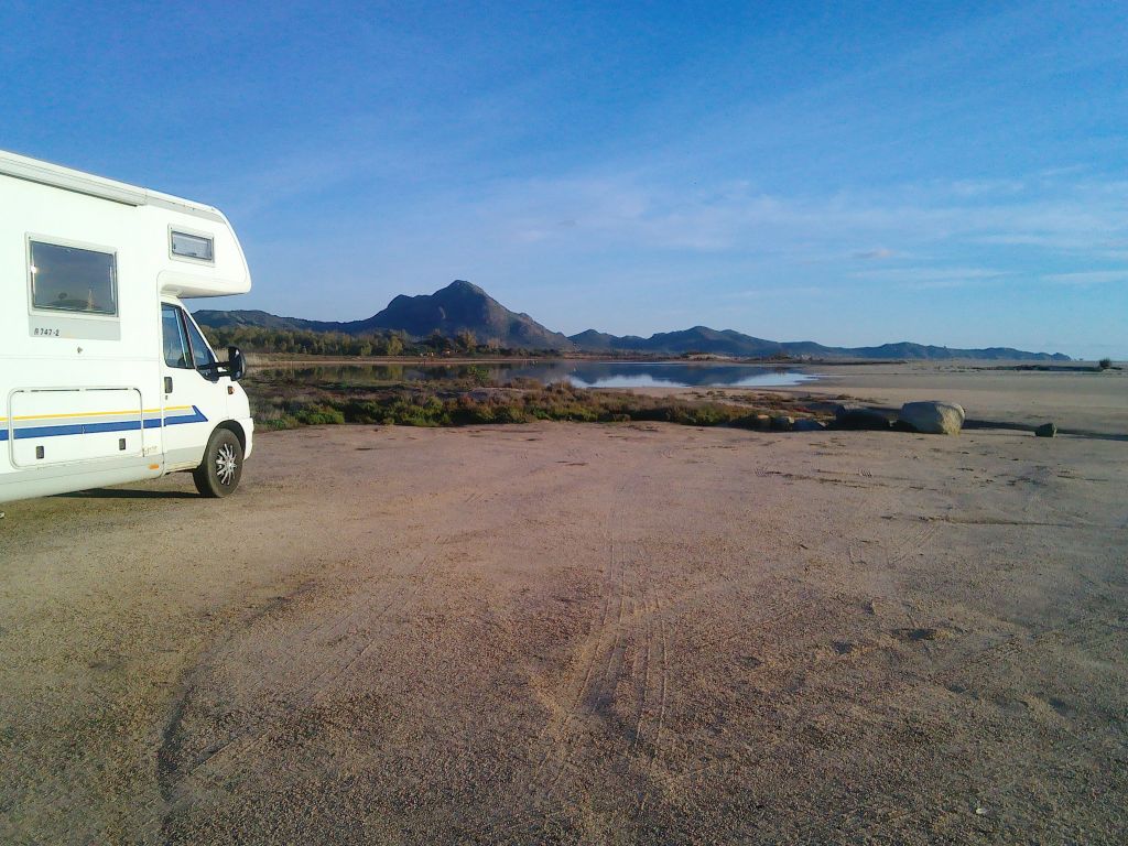 Wir wendeten uns Richtung Süden und fanden für die Nacht einen riesengroßen Parkplatz direkt zwischen der Lagune Piscina Rei und dem Strand der Costa Rei, mit Blick auf den Monte Ferru.
