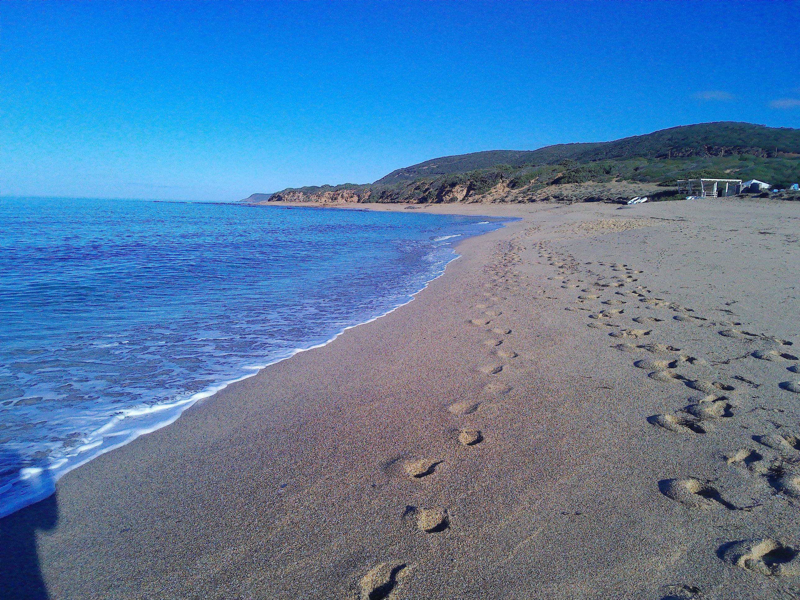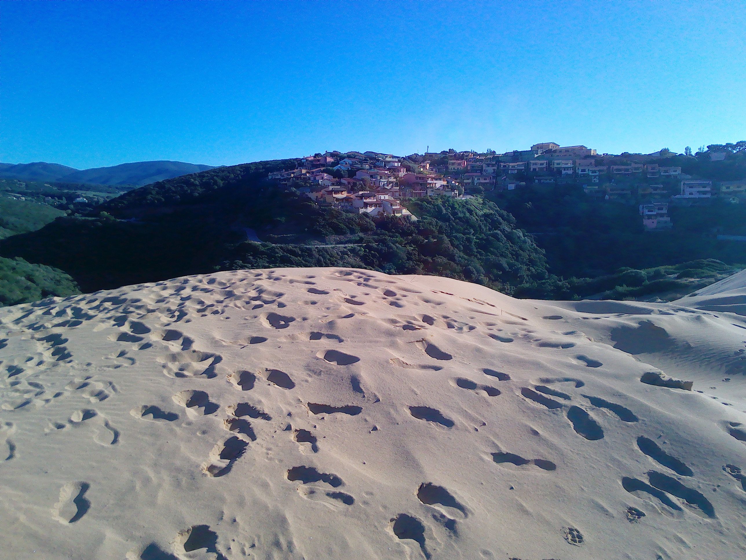 Die Besichtigung der Costa Verde begannen wir in Torre die Corsari. Gleich an den Ort schließt sich der Strand di Torre die Corsari an. Das Besondere an ihm? Es liegen große Dünen dahinter, in denen man sich wie in der Wüste fühlt. Das Besteigen der Dünen ist recht einfach, denn der Sand ist relativ fest. Der Wind hat wundervolle Formen in den Sand gezaubert.