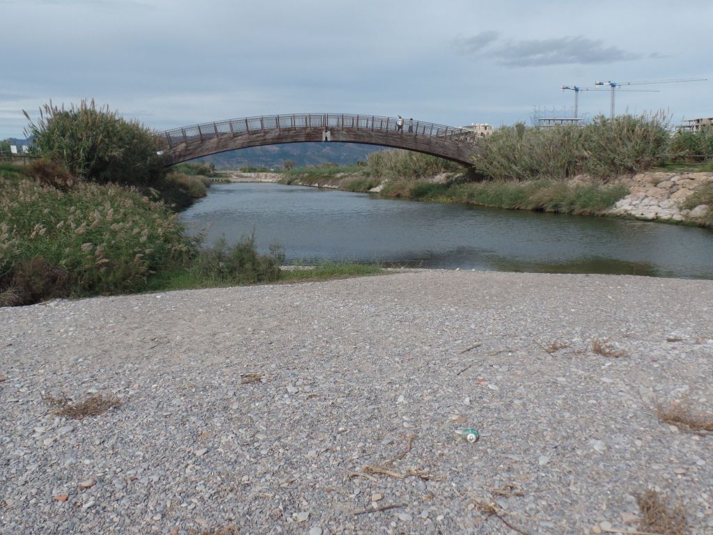 Wir unternahmen eine kleine Fahrradtour nordwärts, erst durch Xilxes durch, dann am Moncofa-Strand entlang, bis zum Belcaire-Fluss, der ins Meer mündet. Sein Flussbett ist bis weit in Landesinnere hinein betoniert. Junge Orangenplantagen liegen an seinen Ufern.