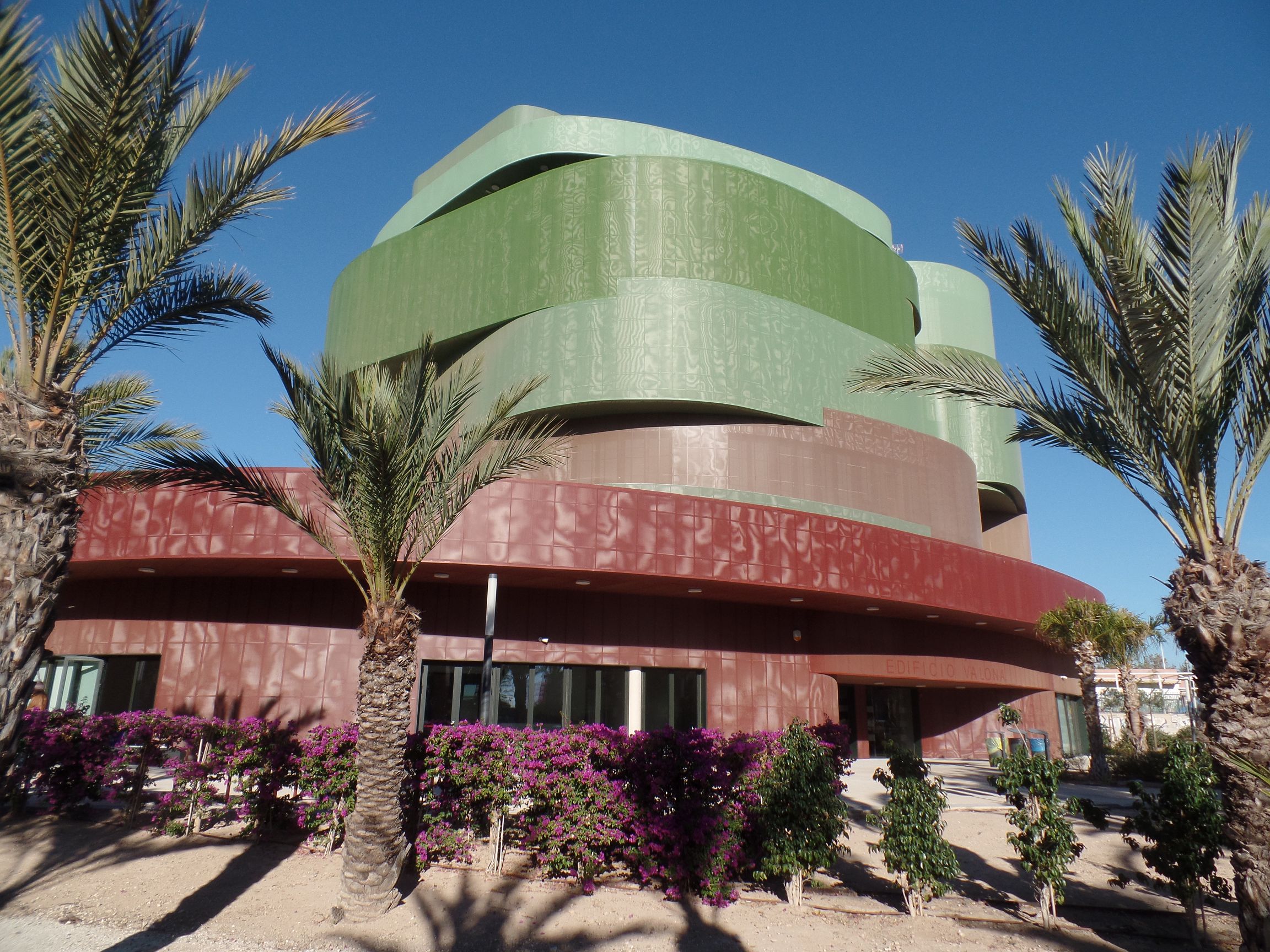 Entlang der vierspurigen und palmengesäumten Straße läuft man zum „El Palmeral“ zurück, an Universitätseinrichtungen und „Oasen“ vorbei, sowie an einer riesigen Dampflokomotive. Leider haben die Fotos, die ich gemacht habe, bei der Bearbeitung Schaden genommen, so dass ich die Kommentare nicht durch Fotos unterstützen kann.