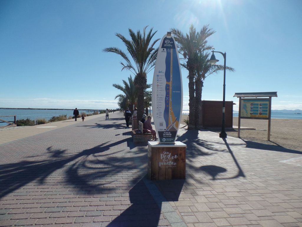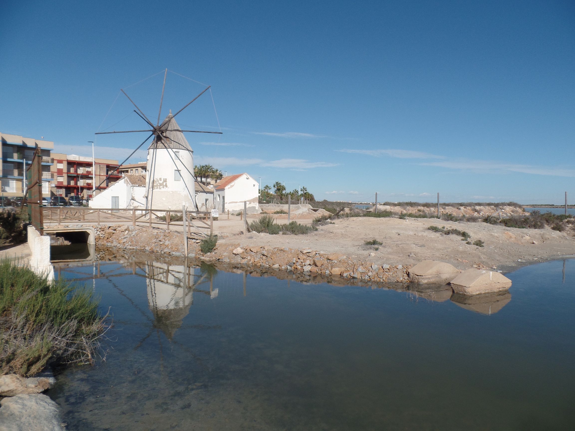 Am Mar Menor angekommen ist zuerst die Mühle „Molino Quintin“ zu sehen. Dahinter öffnet sich die große Wasserfläche des Mar Menor, einem Binnenmeer, welches durch eine lange Nehrung vom Meer abgetrennt ist. Ein breiter Strand ist auch da.