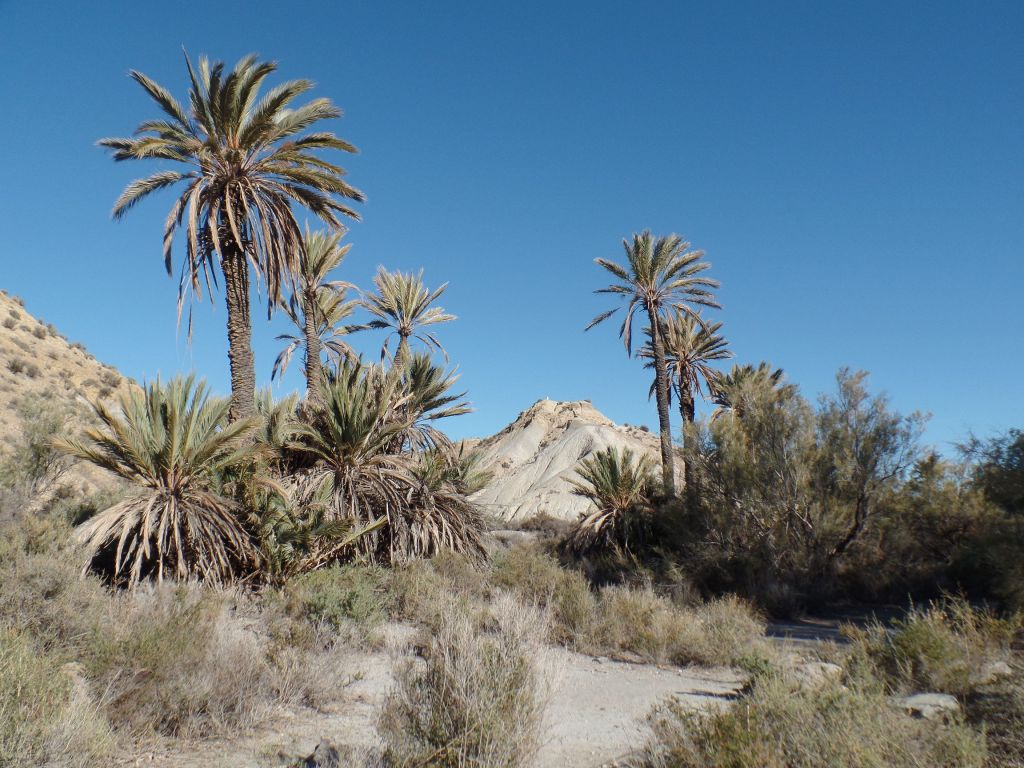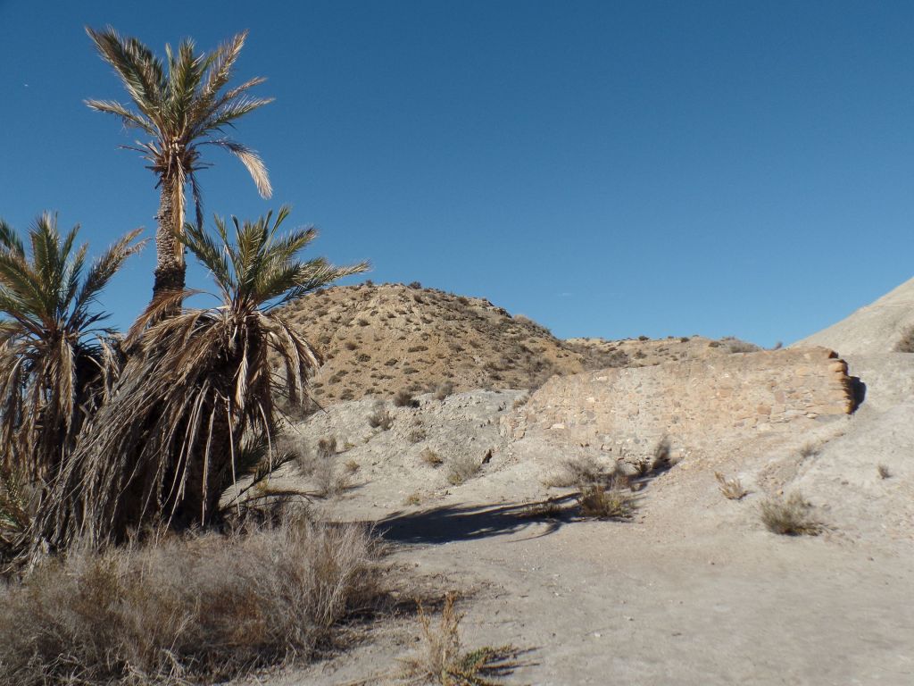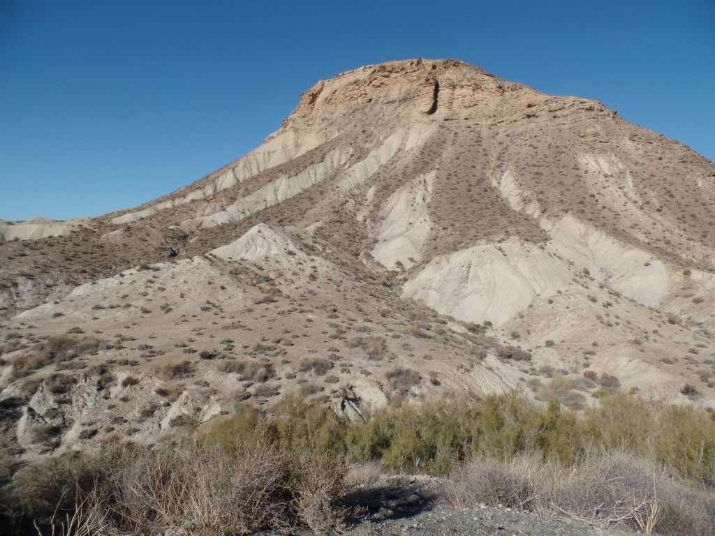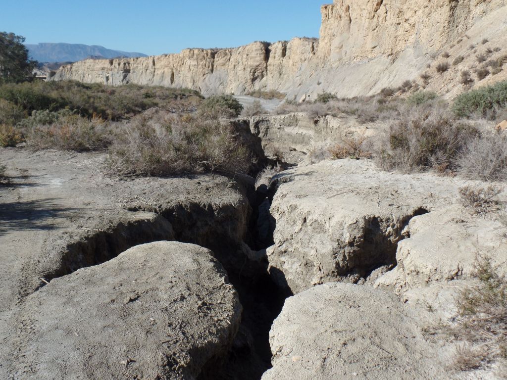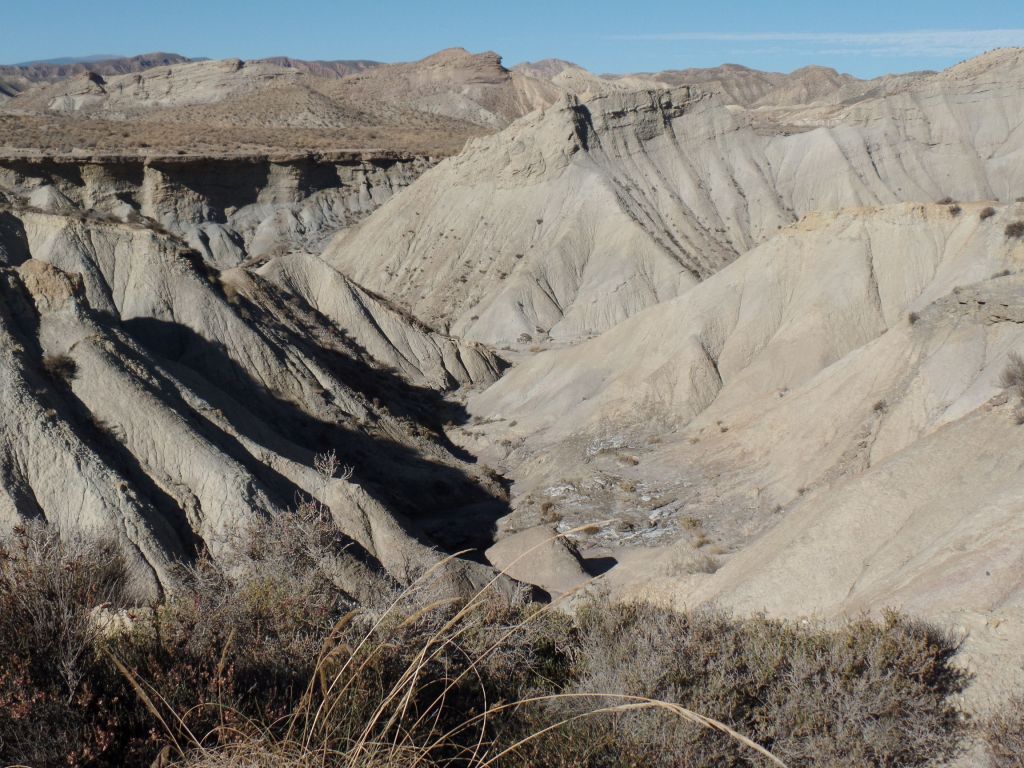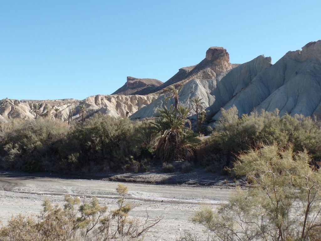 Bei unserer Spanienreisevor neun Jahren hatten wir auch die Wüste von Tabernas besucht, allerdings nur kurz, als Tagesreise von Almeria aus. Diesmal wollten wir uns etwas mehr Zeit lassen. Von der Costa Calida aus fuhren wir durch eine herrliche Landschaft mit vielen Farben und aus verschiedenen Gesteinen (Schiefer, Löss, Sandstein, graue Schichten und eisenhaltige Materialien) bestehend. Angebaut werden hier vorrangig Mandeln und Wein.
