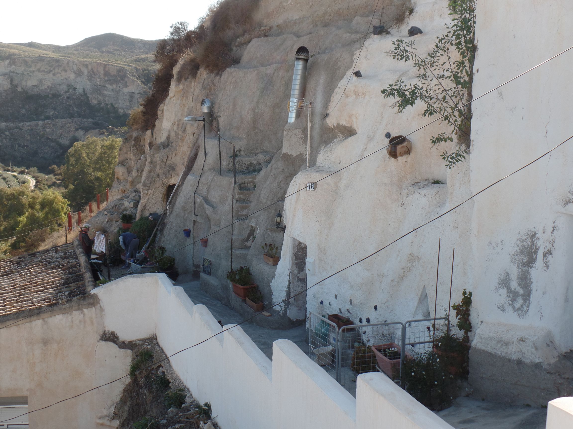 Langsam kamen wir in eine Halbwüste und fuhren in Andalusien ein. In Cuevas del Almanzora sahen wir Höhlenwohnungen. Sie werden nicht mehr oft genutzt, da die meisten Menschen in modernen Häusern leben. Die Höhlenwohnungen bieten sich in dem weichen Gestein der Landschaft direkt an, da man wenig Arbeit damit hat. Sollten wir irgendwann noch einmal hier vorbeikommen, werden wir uns das genauer ansehen.