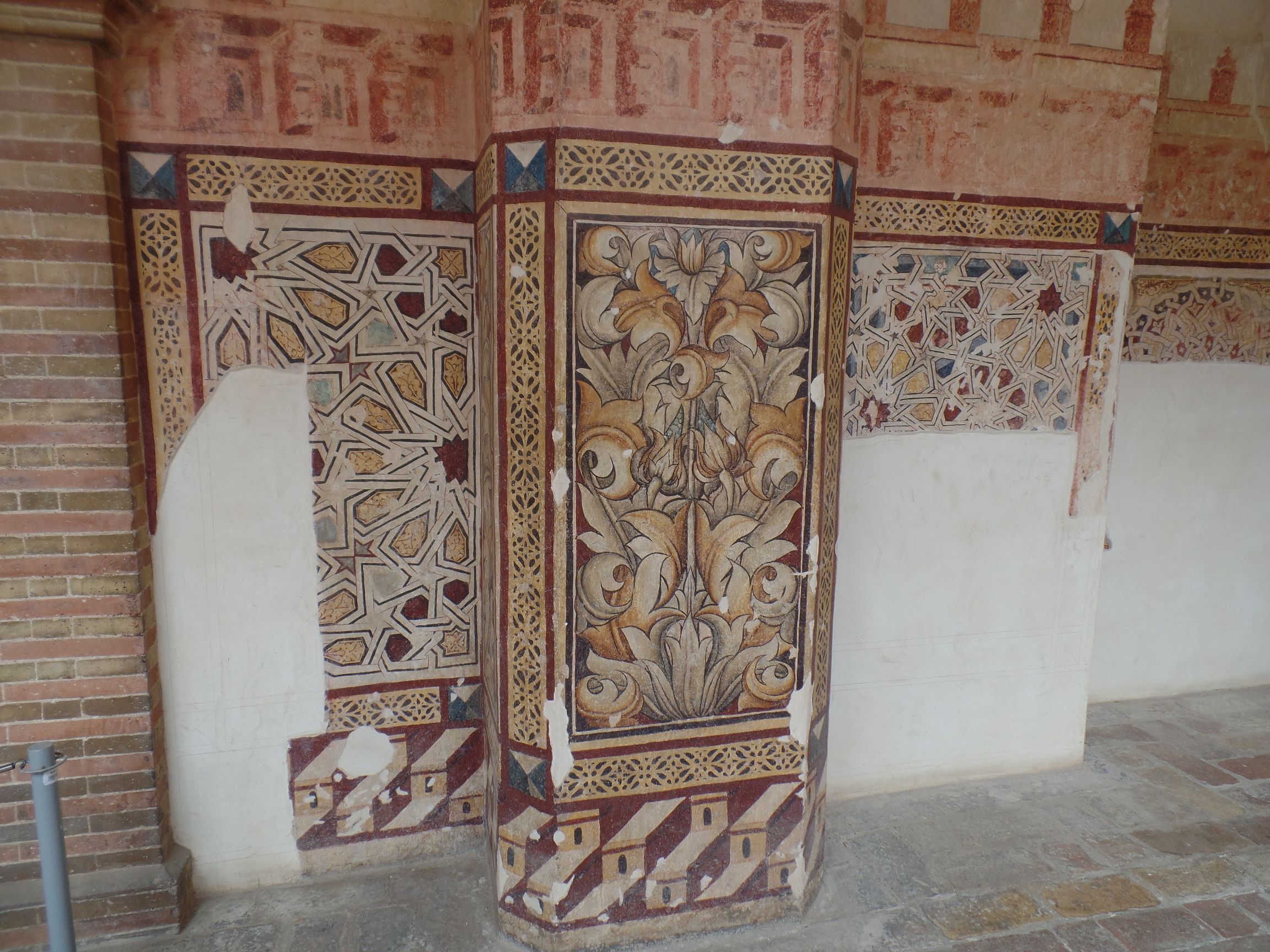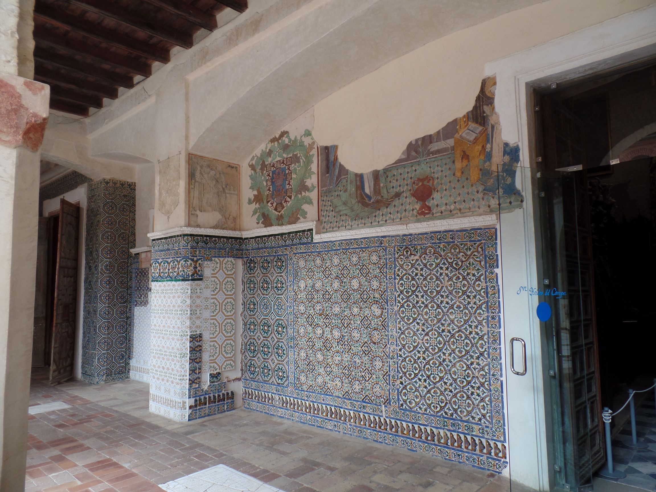 Sehr außergewöhnlich ist die Kombination aus christlichen und maurischen Dekorationen, wie wir es noch nirgends sonst gesehen haben. Wunderschöne maurische Fliesen und Fresken mit christlichen Motiven finden sich an der gleichen Wand, und dies an allen vier Seiten des Kreuzganges.