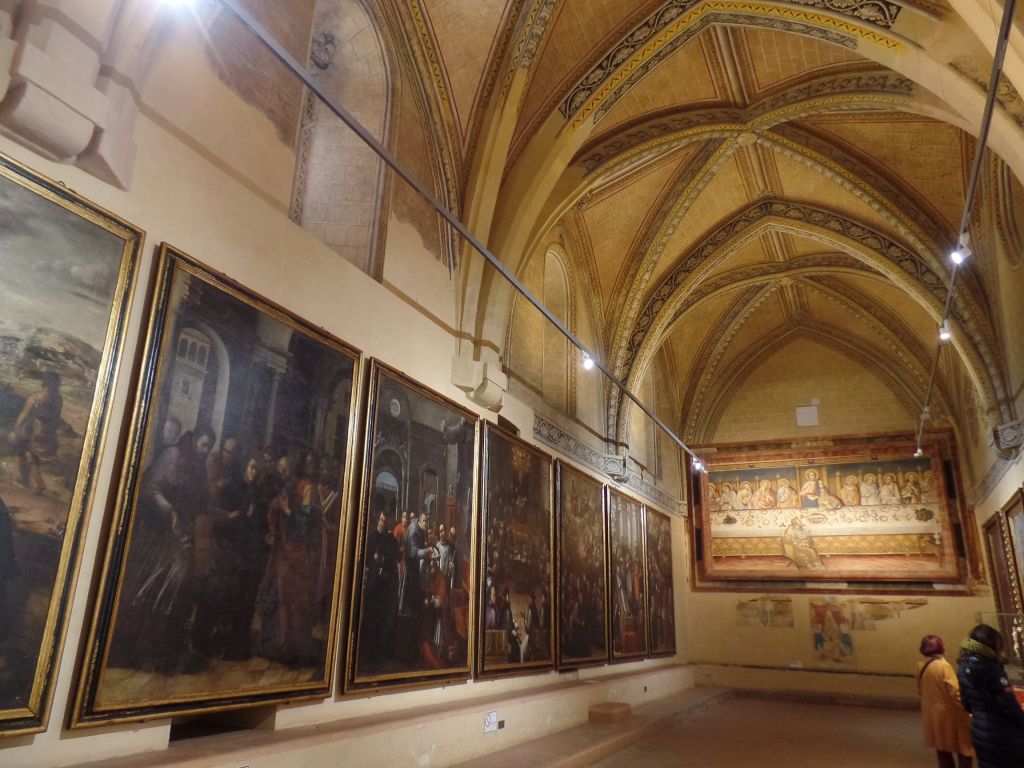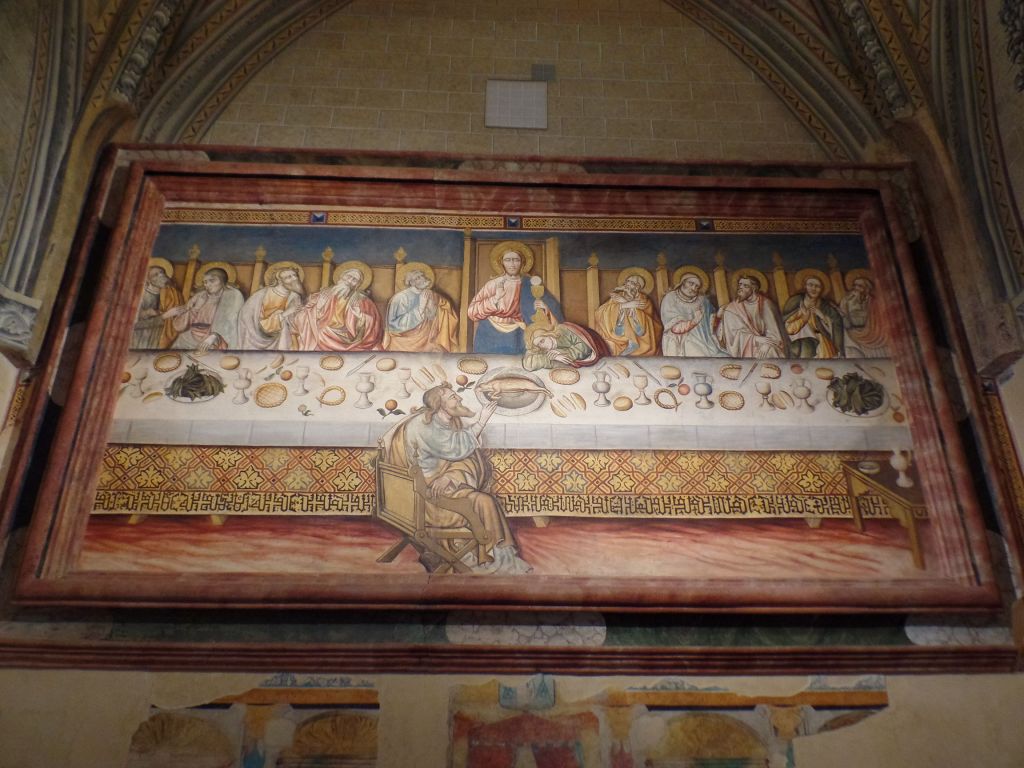 Ein anderer Raum ist mit Kreuzgewölben nach oben hin abgeschlossen. An den beiden langen Wänden hängen riesige Gemälde. An einer der Stirnwände ist das Abendmahl dargestellt. Man kommt aus dem Staunen gar nicht mehr heraus.