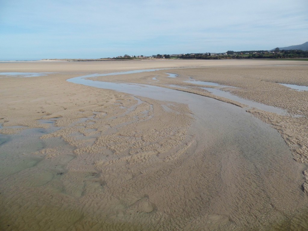 Als wir ankamen schien herrlich die Sonne und es war Ebbe. Die Bucht lag also zum größten Teil trocken, der Untergrund besteht vollkommen aus Sand.