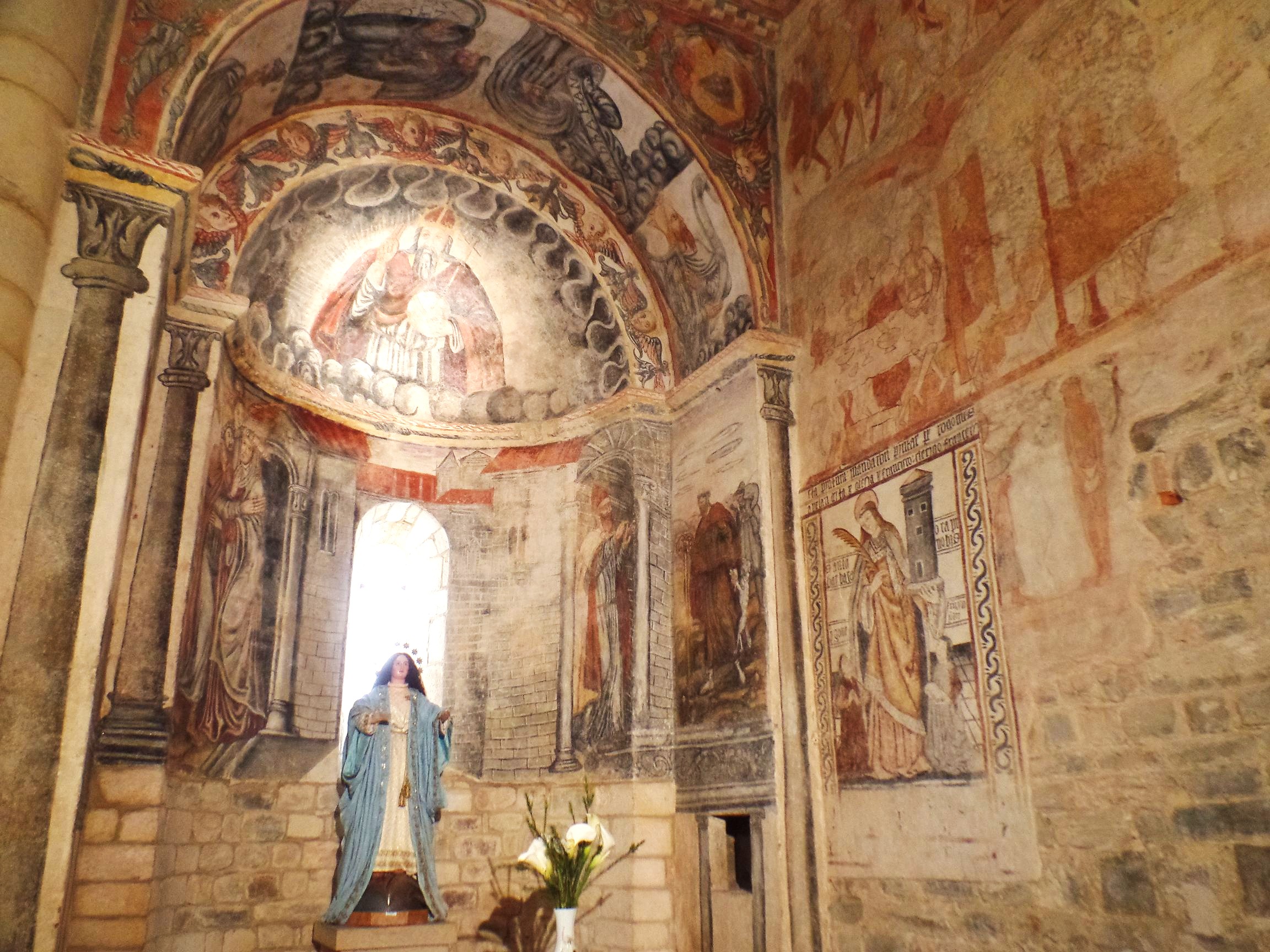 Zudem ist das Innere der Kirche zu besichtigen. Alte Fresken schmücken noch heute den Altarraum.