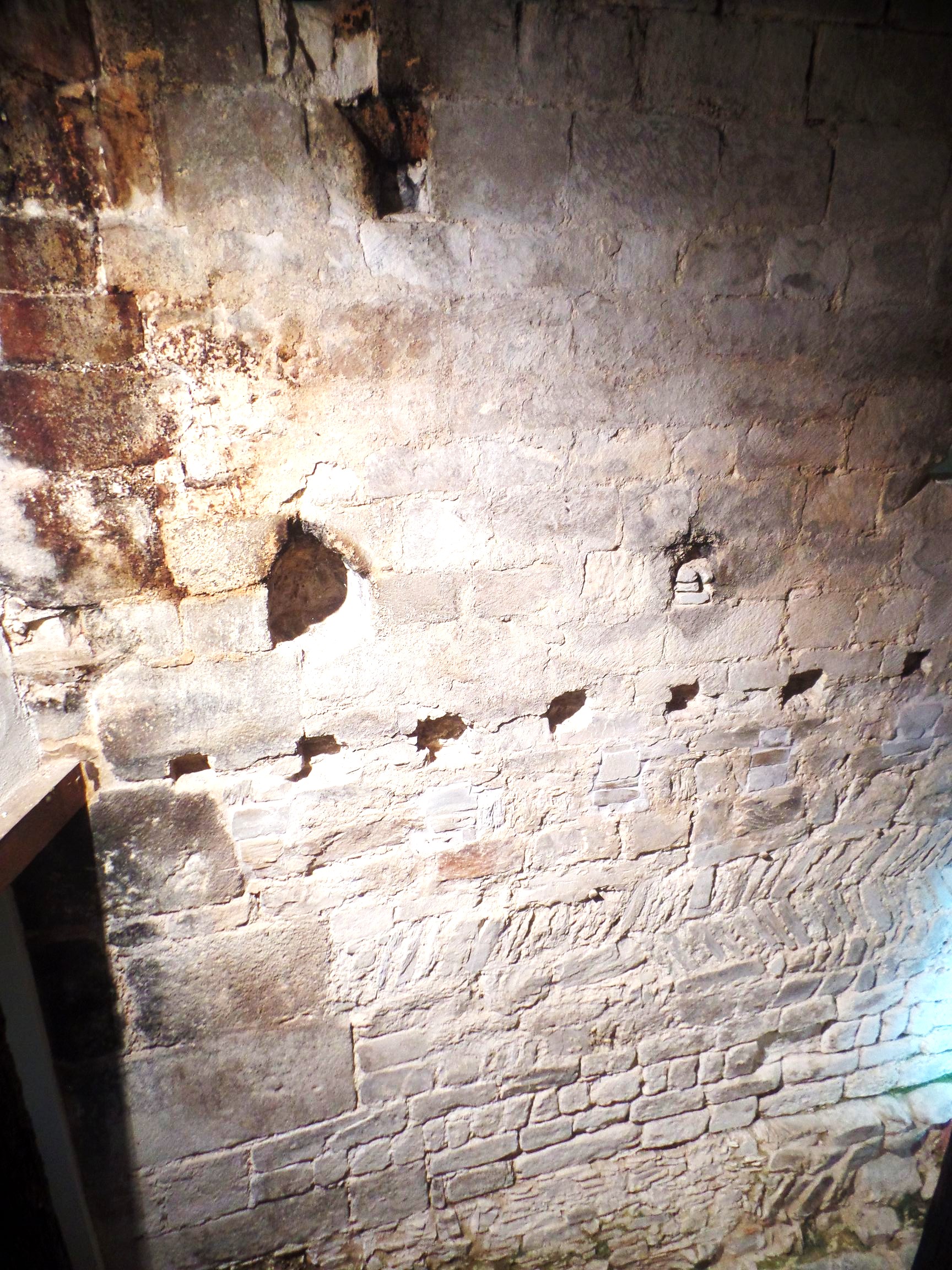 An einigen Stellen wurde das alte Mauerwerk freigelegt, welches römische Details zeigt.