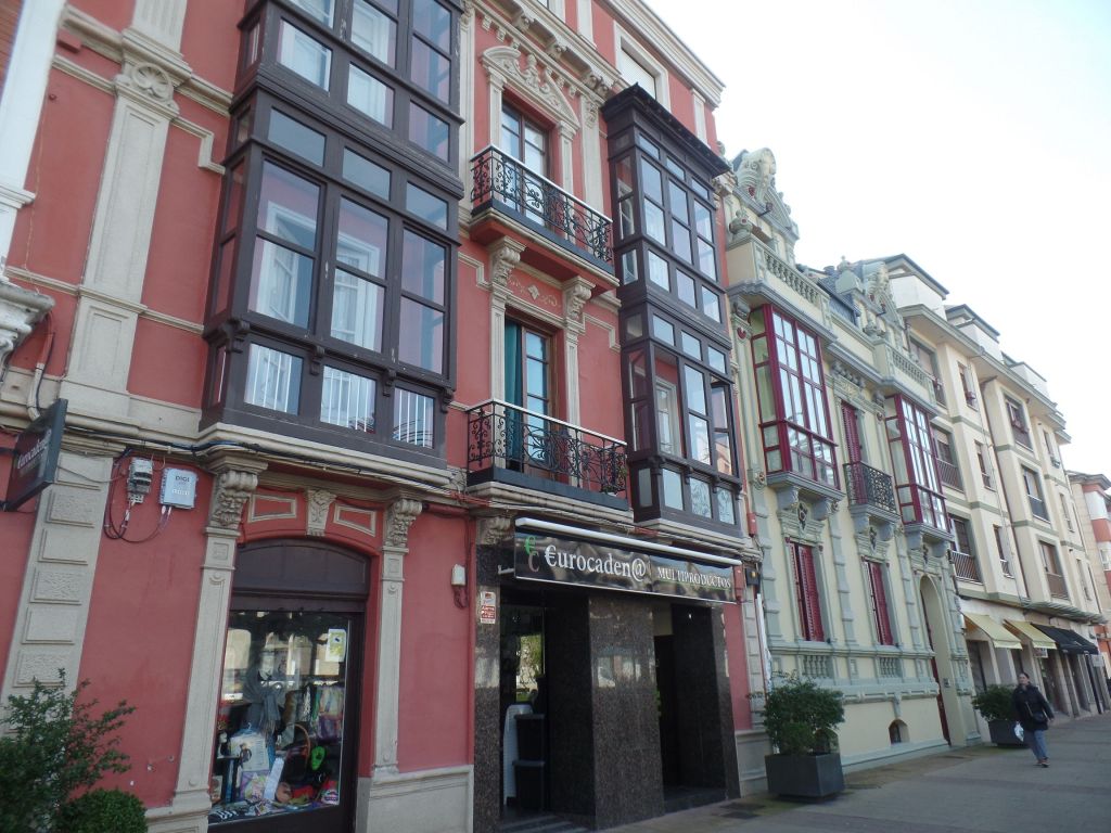 Rechts und links der Straße bieten viele Geschäfte ihre Waren an, zumeist Souvenirs und typisch asturische Produkte.