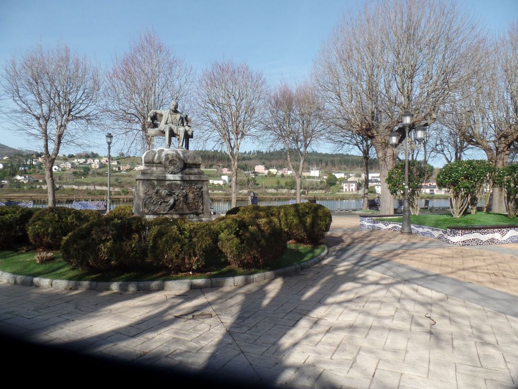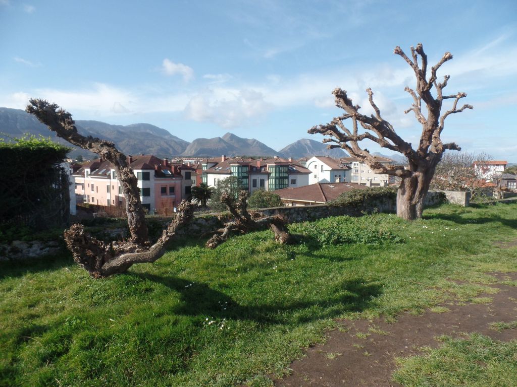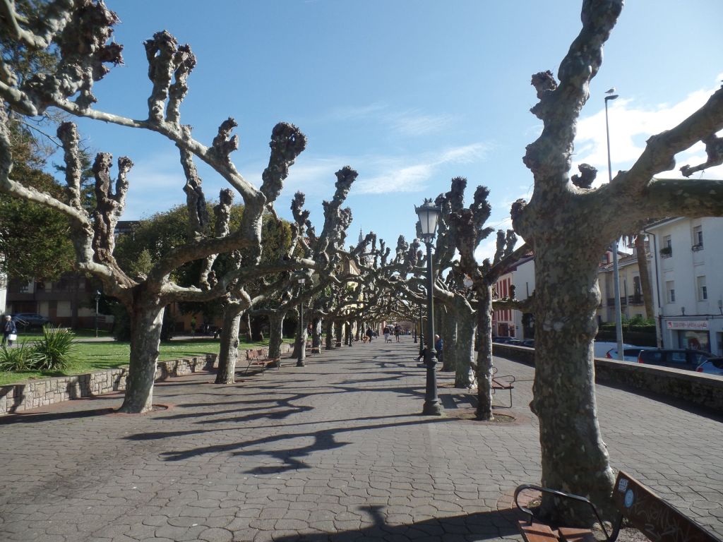 Wir richteten unsere Schritte in die Stadt Navia. Die Brücke, über die wir in die Stadt kamen, bestimmt das Bild. Zwischen den dahinter liegenden Häuserzeilen lädt ein Park zum Ruhen ein, der von Platanen und Palmen bestimmt wird. Die Hecken aus rosa blühenden Kamelien sind besonders schön.