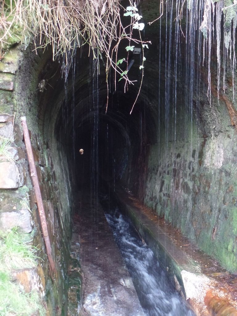 Geht man unterhalb der senkrechten Felswände, die die Bucht begrenzen, entlang, kommt man zu einem Tunnel. Er stammt aus dem Ende des 19. Jahrhunderts, ist dreihundert Meter lang und kanalisiert den Rio Piñera. Bei trockenem Wetter kann man durch den Tunnel gehen. Jetzt gerade tropft das Wasser überall herunter und der schmale Weg durch den Tunnel ist sehr glitschig. Eine Taschenlampe ist wahrscheinlich angeraten, denn die dreihundert Meter sehen dunkel aus.