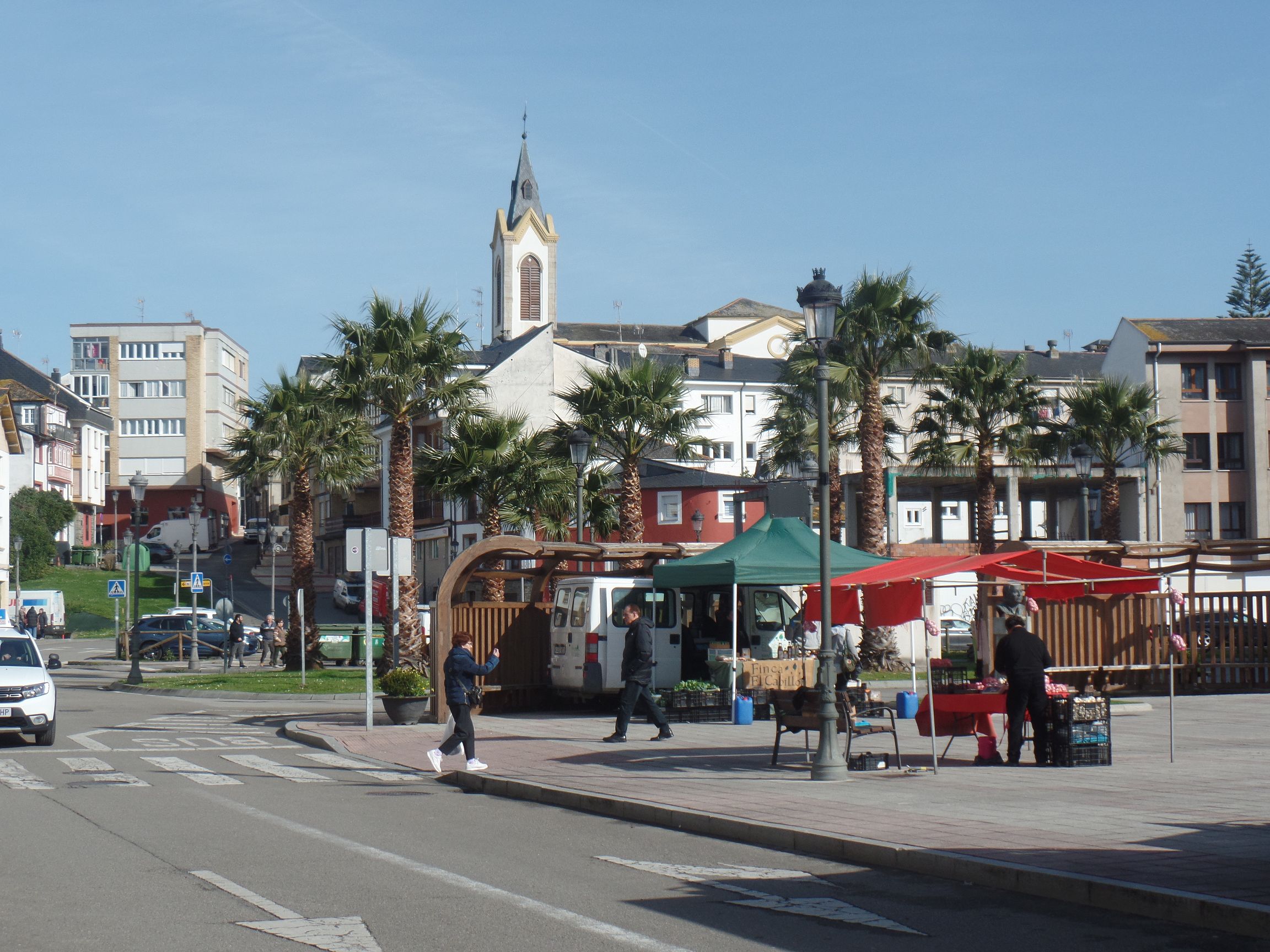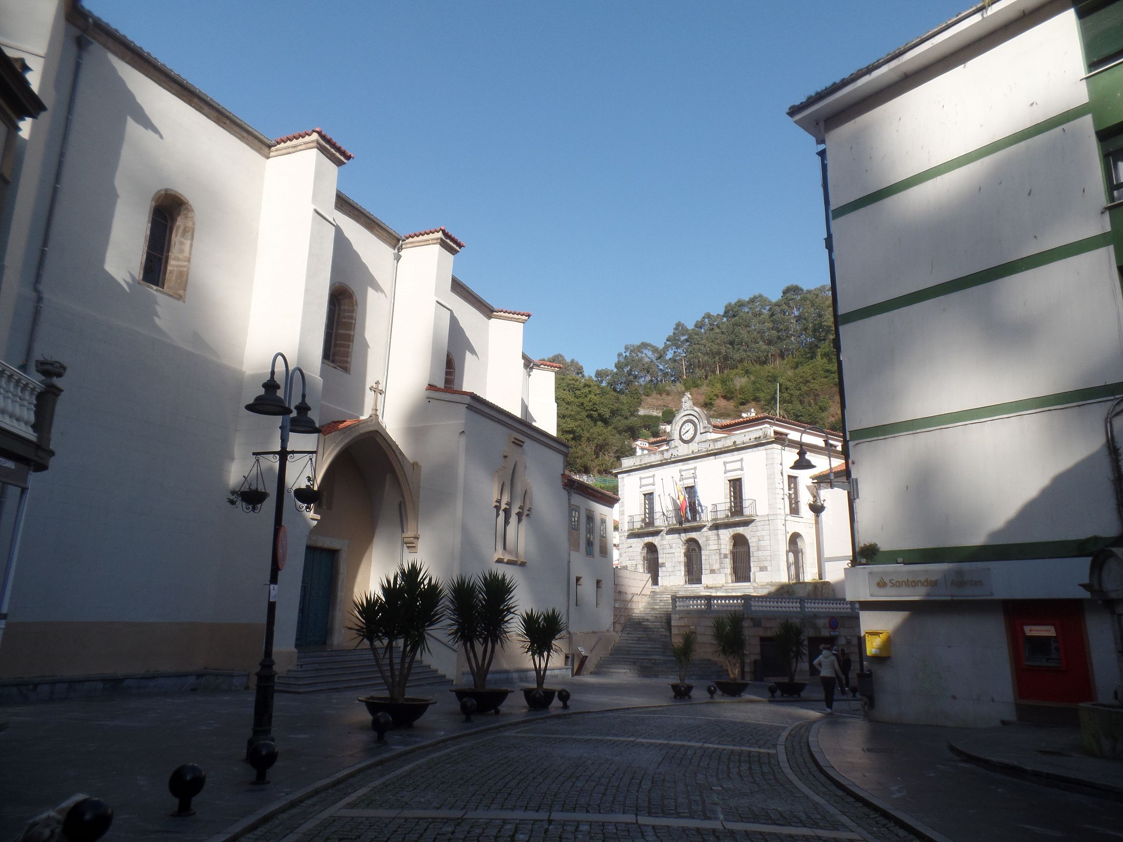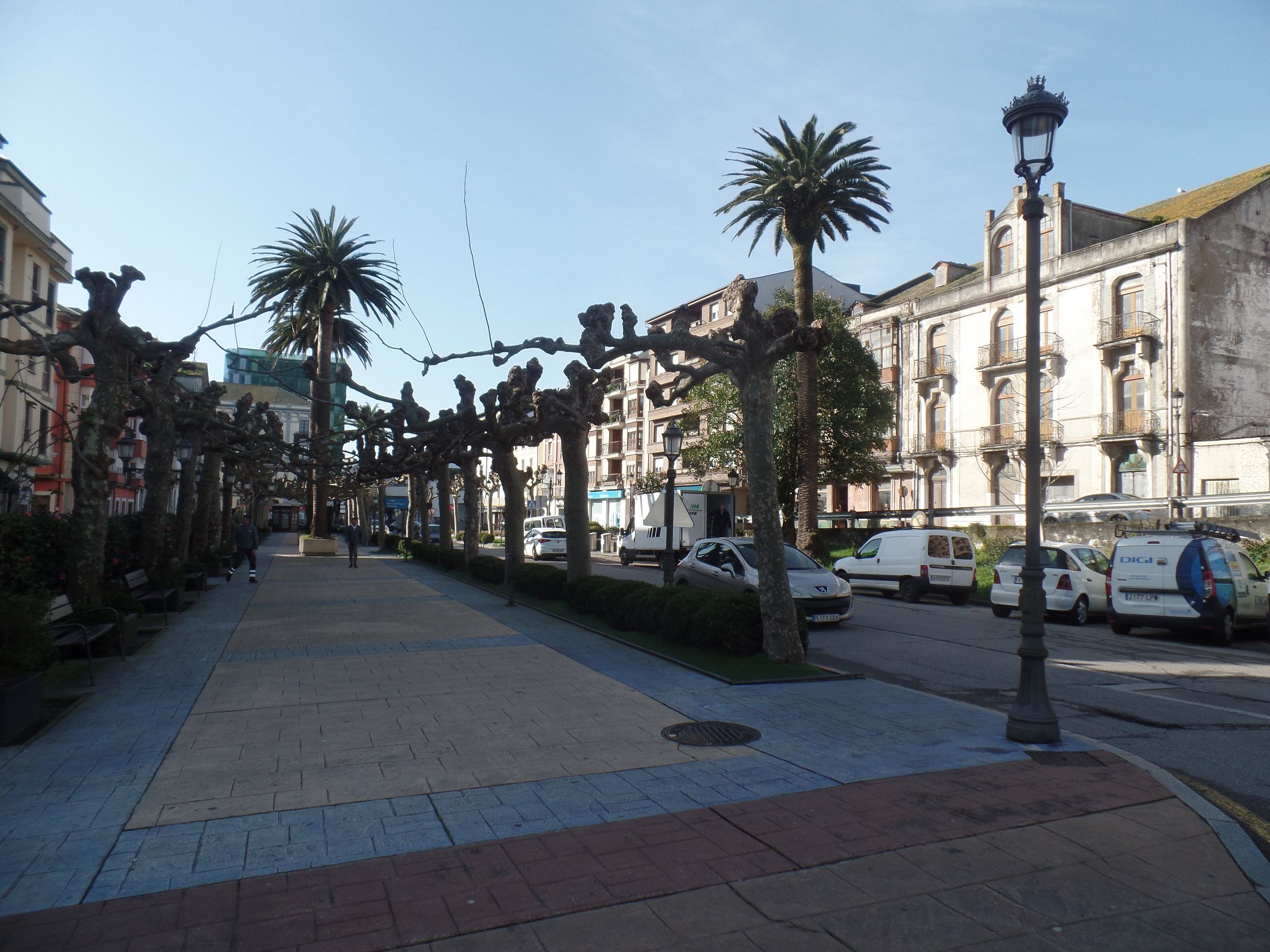 Wir richteten unsere Schritte in die Stadt Navia. Die Brücke, über die wir in die Stadt kamen, bestimmt das Bild. Zwischen den dahinter liegenden Häuserzeilen lädt ein Park zum Ruhen ein, der von Platanen und Palmen bestimmt wird. Die Hecken aus rosa blühenden Kamelien sind besonders schön.