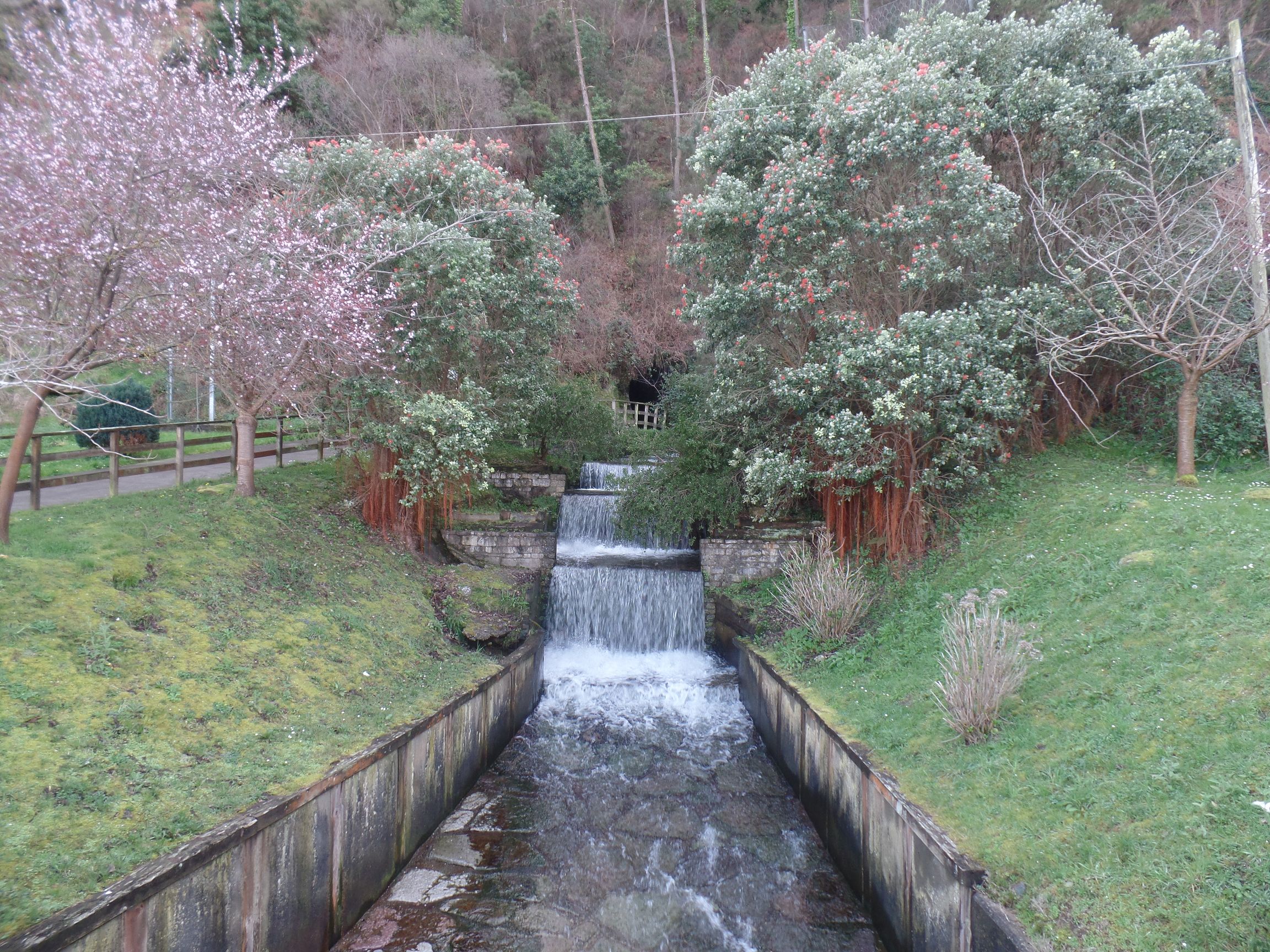 Der Fluss ergießt sich am Tunnelausgang über mehrere Kaskaden und fließt dann ins Hafenbecken. Bei Ebbe baden gerne die Möwen in dem Süßwasser, um sich das Salz des Meeres abzuwaschen.