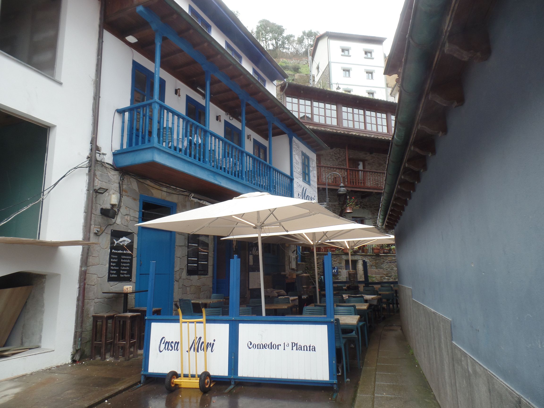 Über eine Brücke erreicht man das Dorf und erreicht dann den zentralen Platz. Staunend standen wir da und betrachteten die fast übereinander gestapelten Häuser, die alle sehr hübsch zurecht gemacht sind. Hier finden sich viele Restaurants, die typisch asturische Küche anbieten.