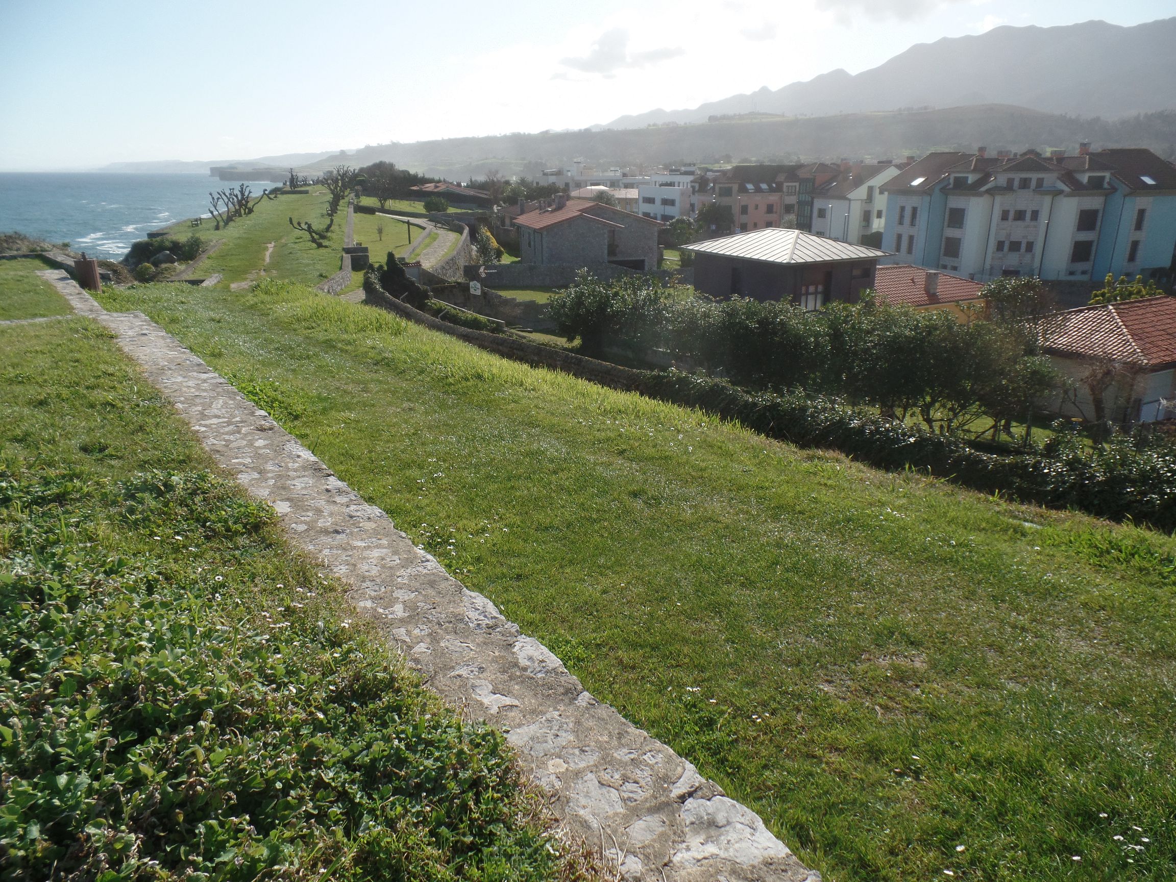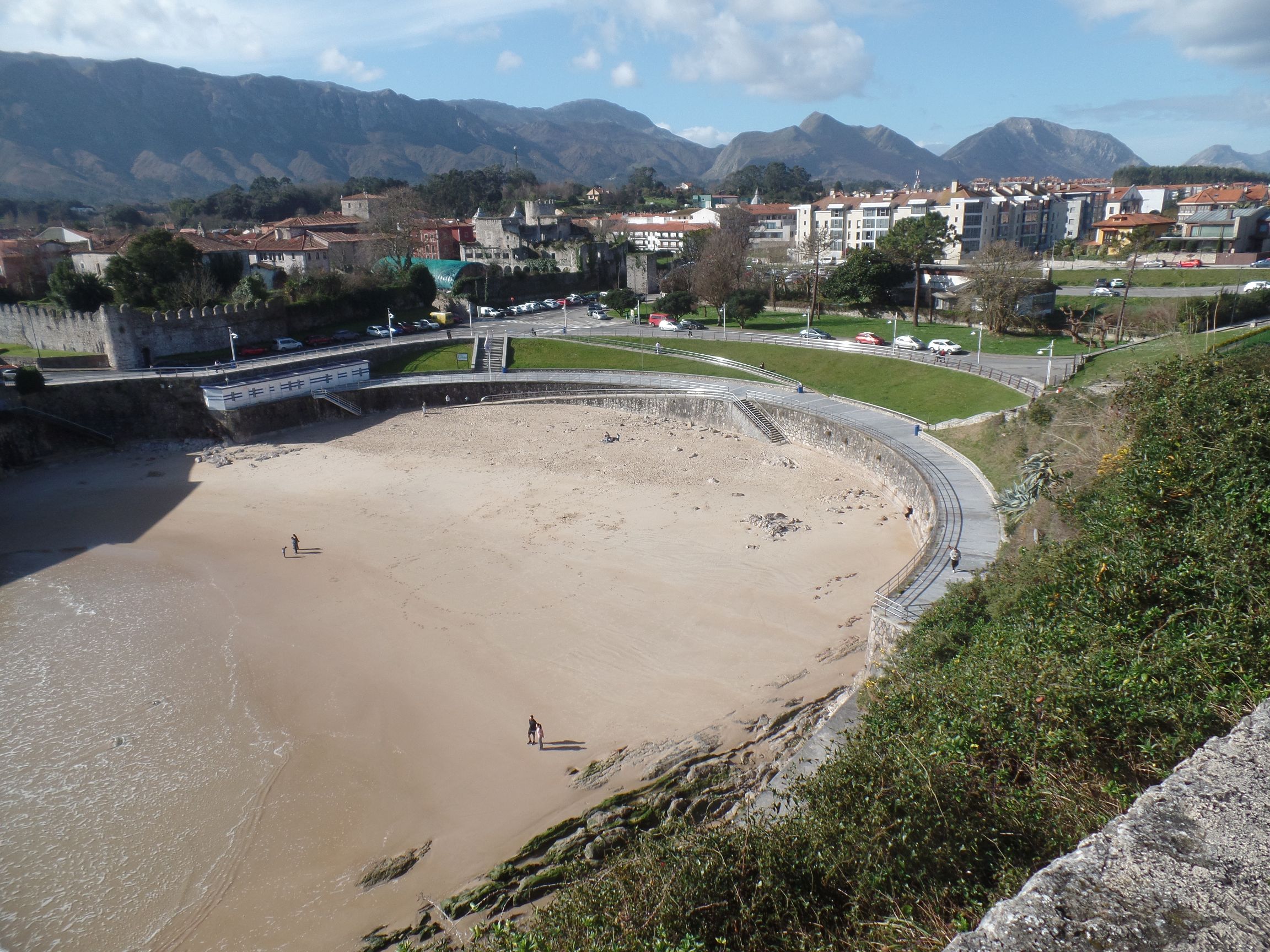 Die Stadt ist vollkommen anders als Cudillero, aber genauso sehenswert. Llanes liegt zwischen dem Gebirgszug „Picos de Europa“ und der Biskaya. Die Stadt wird durch einen Felsenkamm, der nicht mehr aus Schiefer besteht, sondern aus Kalkstein, vom Meer abgeschirmt. Auf diesem Felsenkamm verläuft ein Wanderweg mit herrlichen Aussichten und vielen Sitzgelegenheiten. Auf der einen Seite liegt das Meer, auf der anderen Seite blickt man auf die Stadt hinab. Im Hintergrund erheben sich die Berge. Allerdings verhindert die Sierra de Cuera einen Blick auf die schneebedeckten Zweieinhalbtausender der „Picos de Europa“.