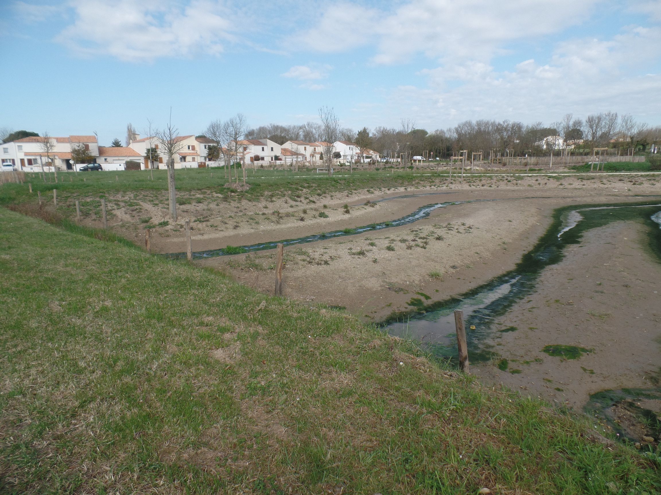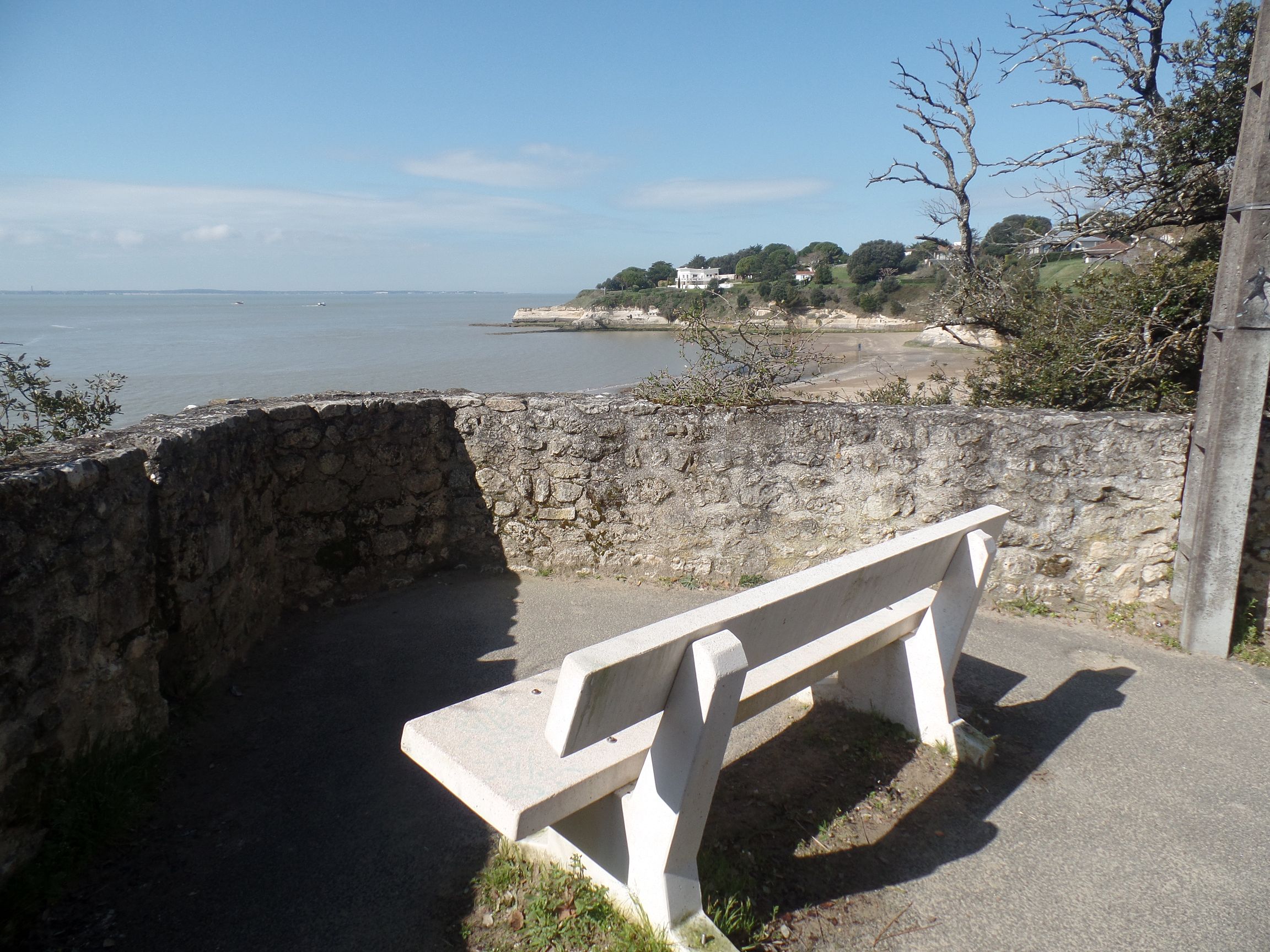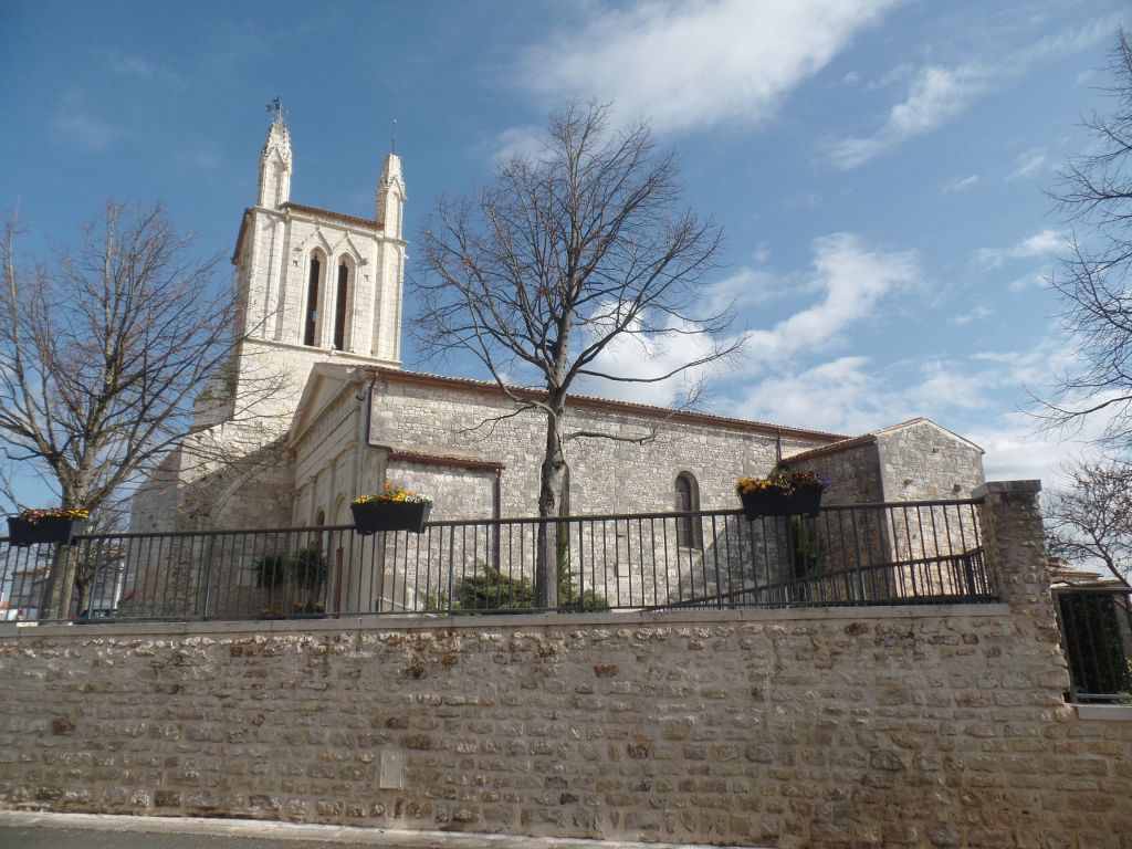 Zuerst richteten wir unsere Schritte in Richtung Kirche „Saint-Saturnin de Meschers-sur-Gironde“. Dabei kommt man an einem neu angelegten Park vorbei, mit einem gewundenen Weg, Wasserflächen, die bei Ebbe trocken fallen, und einem Spielplatz.