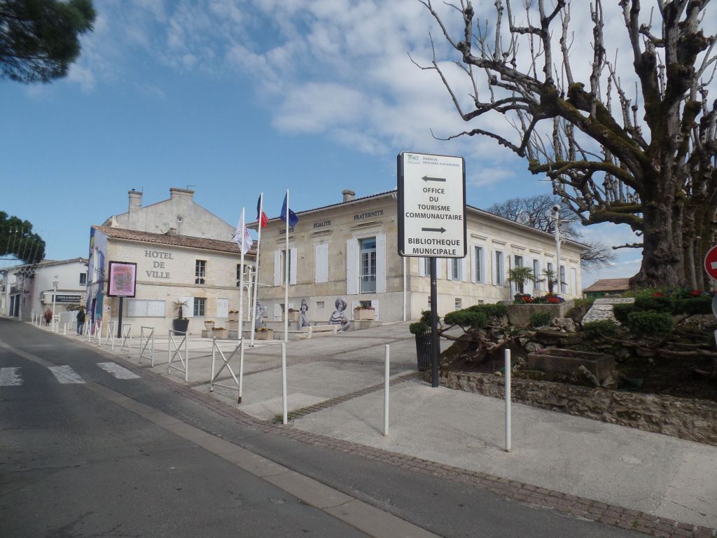 So spazierten wir weiter durch die Stadt, vorbei am Rathaus, dem Touristbüro und dem Wappen der Stadt Meschers.