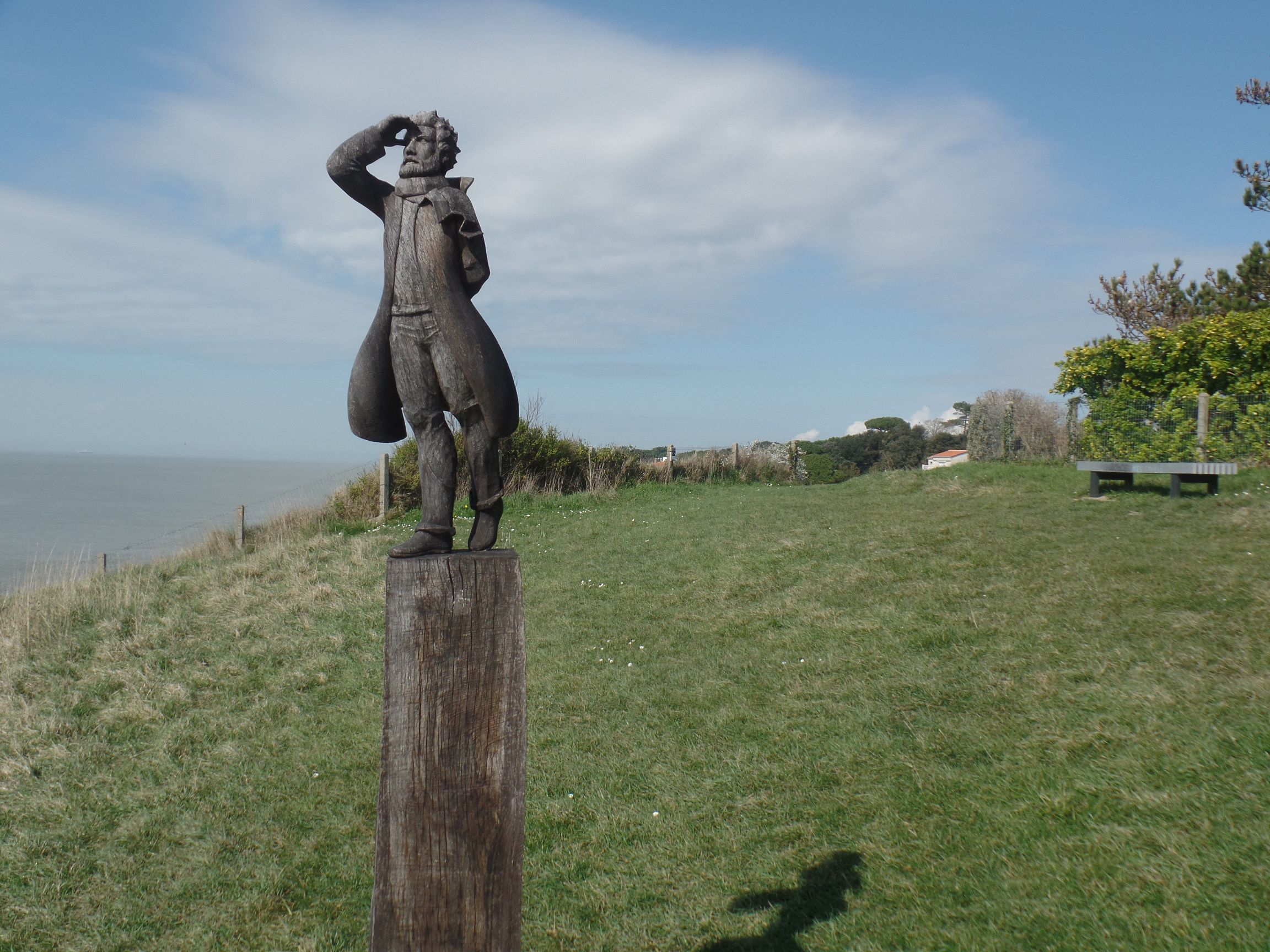 Eine Straße führt nun zurück zum Hafen, immer an der Steilküste entlang. Als nächstes lädt ein Aussichtspunkt zu einem Besuch ein. Von hier aus hat man einen schönen Blick zum Conche des Cadets zurück, auf der anderen Seite sieht man einen Teil der Höhlenwohnungen. Die Holzstatuette eines unbekannten gutbürgerlichen Mannes, der auf See blickt, verziert den schönen Aussichtspunkt.