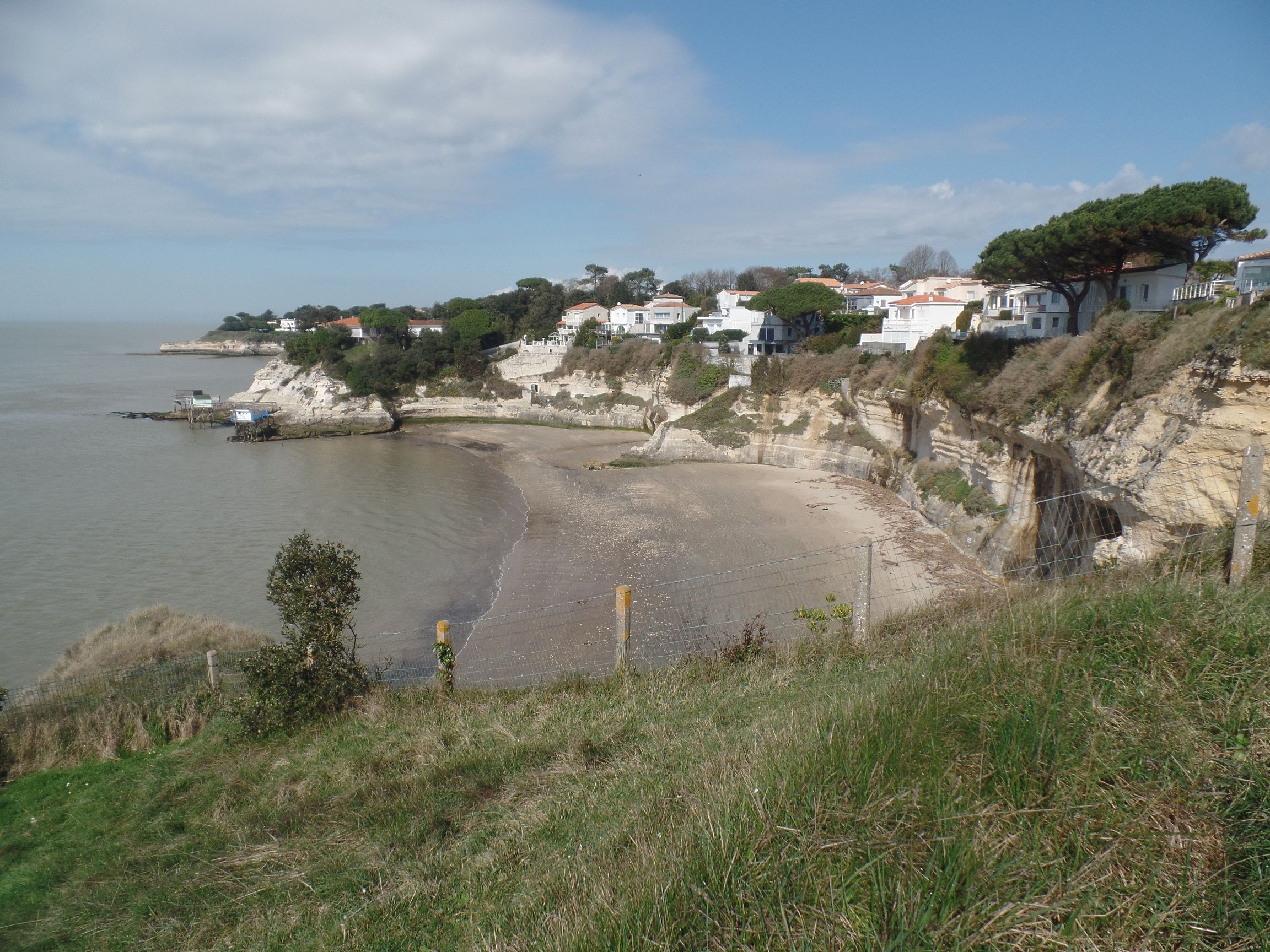 Das wirkliche Ziel in Meschers sind die Höhlenwohnungen in der Steilküste. Dafür spazierten wir weiter zum Nonnenstrand, und zum Strand „Conche des Cadets“. Umrahmt werden die Strände von Sandsteinklippen.