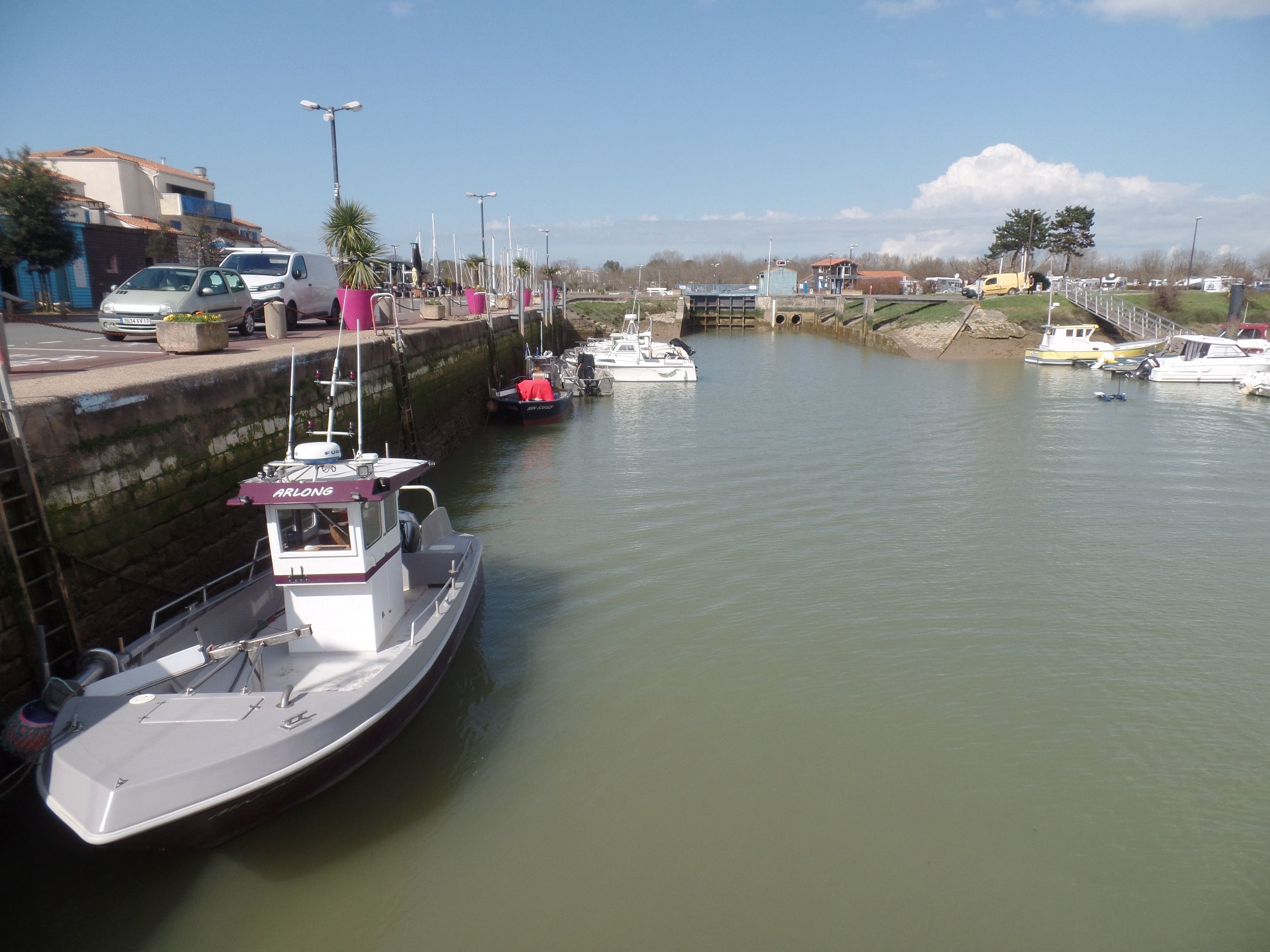 Hier gibt es einen Stellplatz am Hafen, den wir nutzten. Bei Ebbe erreicht man das Hafenviertel direkt über das Schleusentor, ansonsten muss man um das Hafenbecken herum laufen.