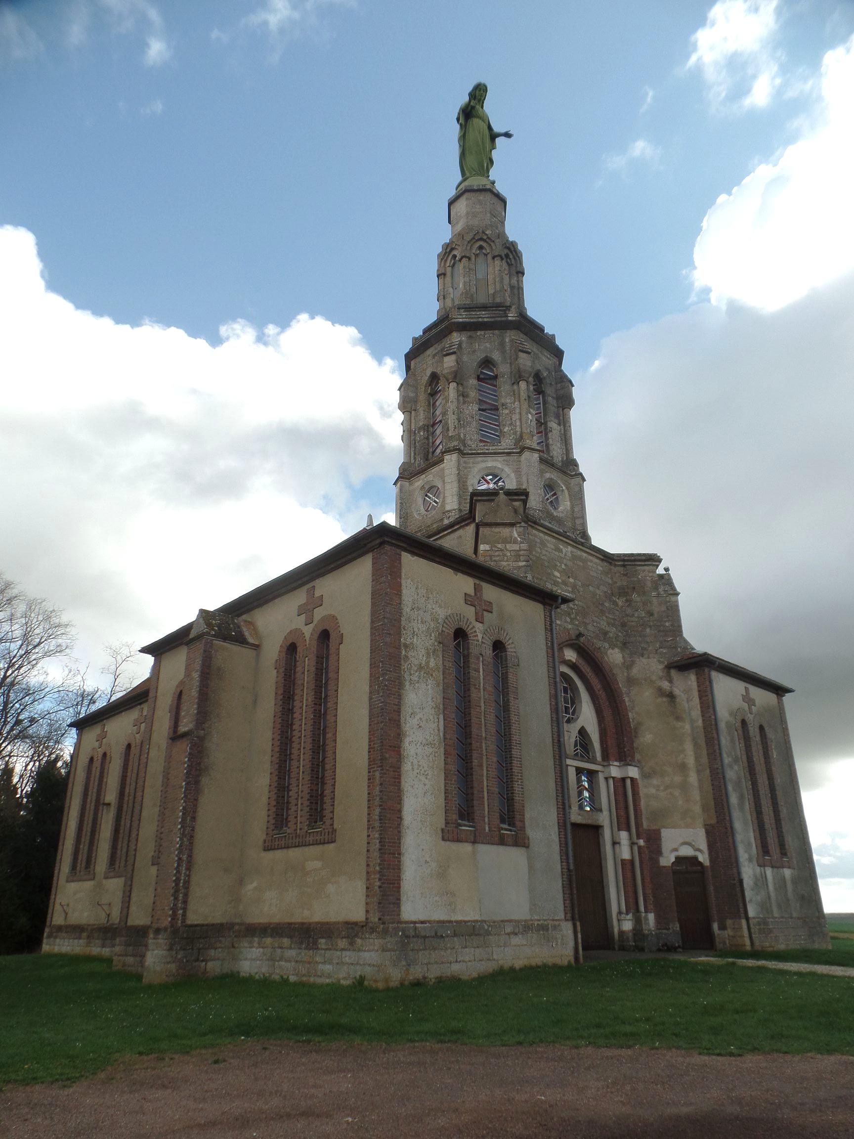 Zwischen Auxerre und Troyes weckte ein Turm mit einer Figur auf der Spitze unser Interesse. In Villeneuve-au-Chemin bogen wir zur Kapelle Saint-Joseph-des-Anges ab, die auf einem Hügel steht.
