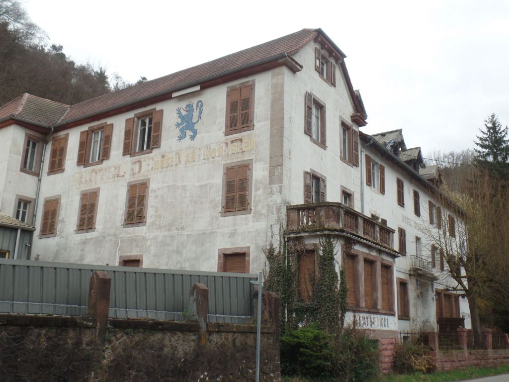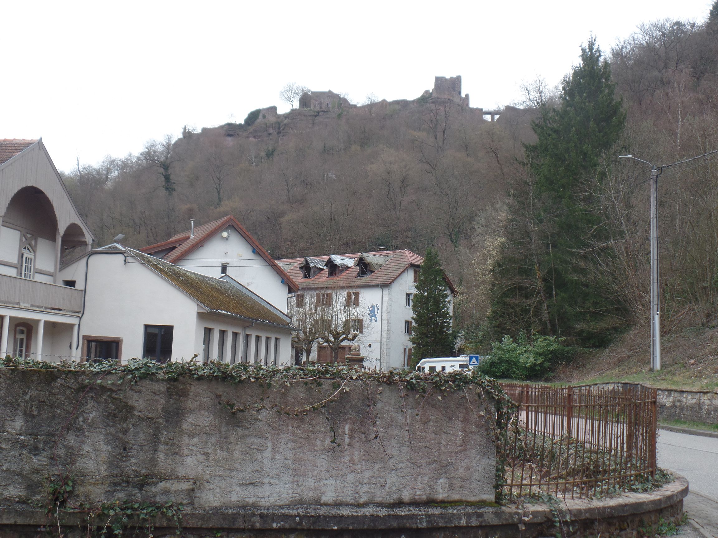 Da es im Dorf kaum Parkplätze gibt, stellten wir das Wohnmobil in einer Parkbucht am Hotel „Zum Blauen Löwen“ ab. Das Hotel ist geschlossen und wartet auf seine Renovierung. Direkt oberhalb thront die Lützelburg.