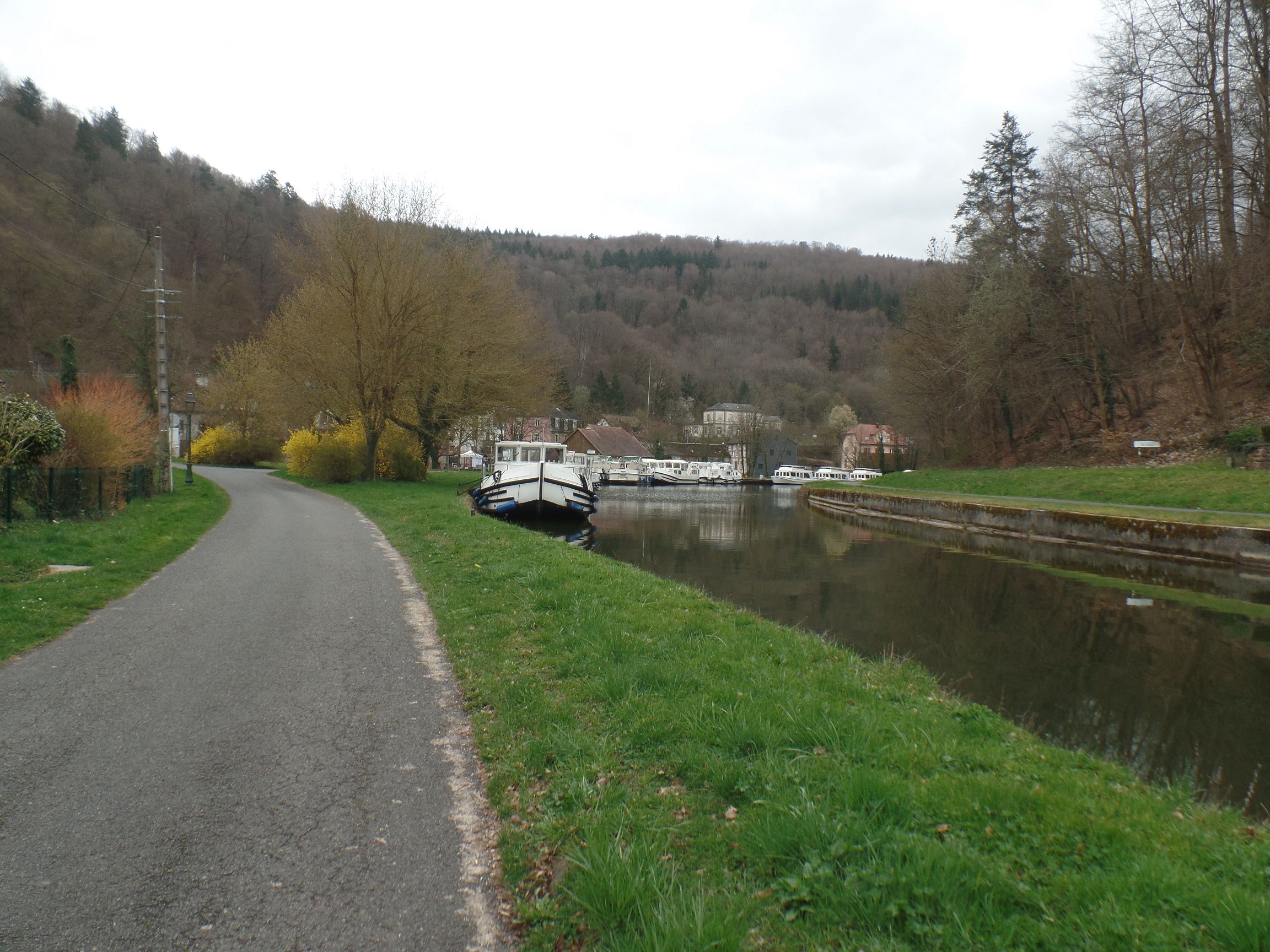 Wir spazierten zuerst am Rhein-Marne-Kanal entlang, bis ins Dorfzentrum. Dabei kommt man an der kleinen Marina vorbei, in der jetzt die Boote überwintern, die man im Sommerhalbjahr mieten kann.