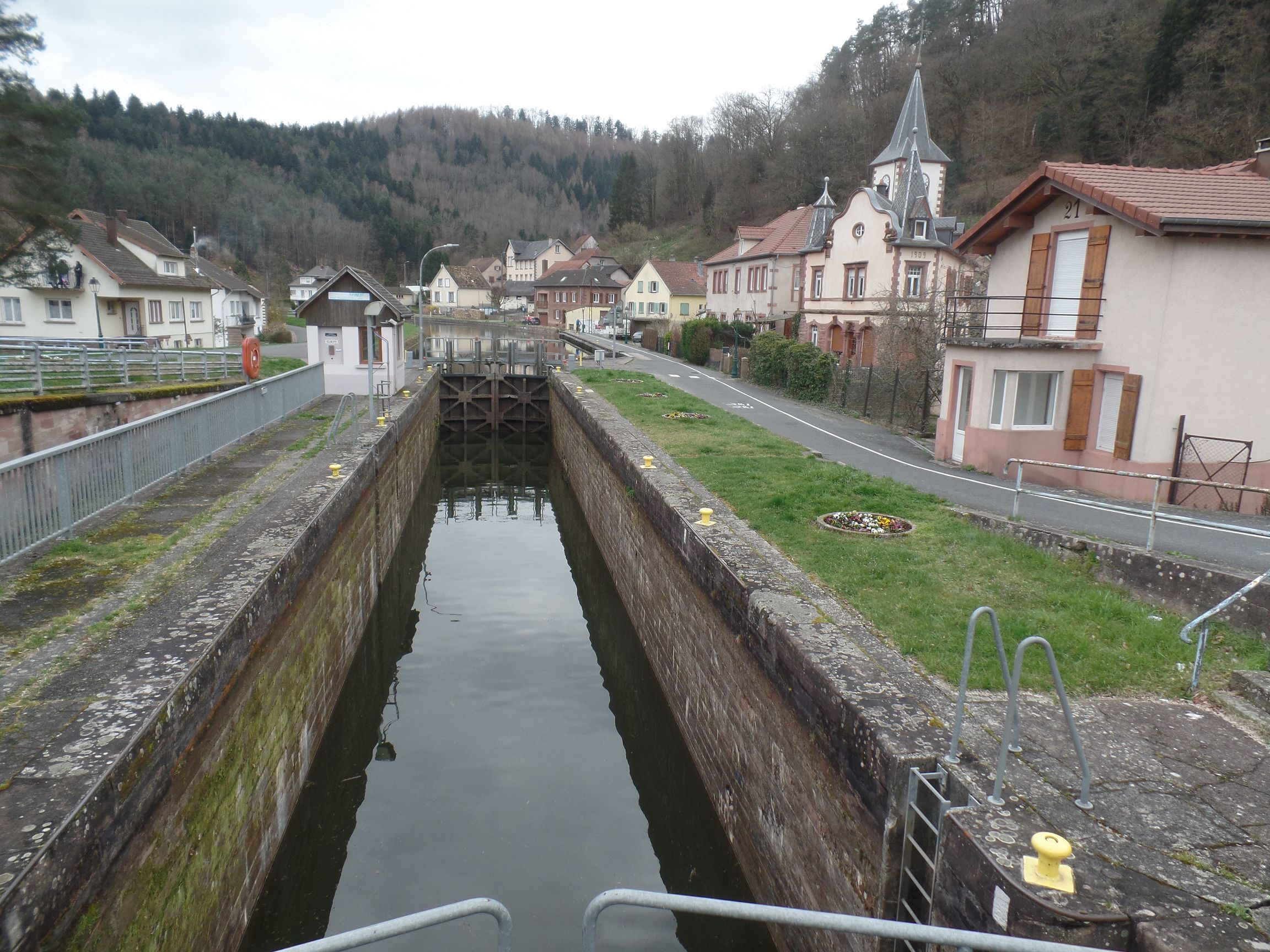 Das Dorfzentrum ist ganz hübsch, mit der kleinen Kirche Saint-Michel, der Schleuse 21, der Brücke über den Zorn-Fluss und den alten Gebäuden.