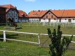In Czerwony Folwark, die Straße ist wieder asphaltiert, sollte man links am Hinweisschild nach Rosochaty Róg abbiegen. Den Amphibien-Lehrpfad haben wir zwar nicht gefunden, aber die Lage des Ortes ist einmalig schön, mehr Idylle geht nicht. Wir kamen uns dort fast wie im weiten Russland vor, Birken, sattes grünes Gras, Fischteiche und ein See, dazu verschiedene Tiere bis hin zu den Polnischen Pferden. Da muss man einfach eine Weile verbringen und den Anblick genießen.