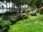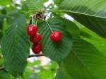 Durch Wald hindurch, jetzt sind die Walderdbeeren reif, hmm lecker, dreht der Fahrweg nach Norden und kommt irgendwann zum Piski-Platz. Ein kleiner Fußweg führt 200m zum Seeufer hinunter. Dies ist die Badestelle am Goldstrand. Das Wasser soll so flach sein, dass man weit in den See laufen kann, wenn man baden will. Ein Strand im üblichen Sinn ist es jedoch nicht, sondern nur eine Wiese. In der Nähe des oberen Klohäuschens steht ein Wildkirschbaum, dessen Früchte gerade ebenfalls reif und lecker sind. Da dies noch niemand entdeckt hat, konnten wir uns an den gut erreichbaren Ästen bedienen. Walderdbeeren und Kirschen, da braucht man kaum etwas anderes zu essen.