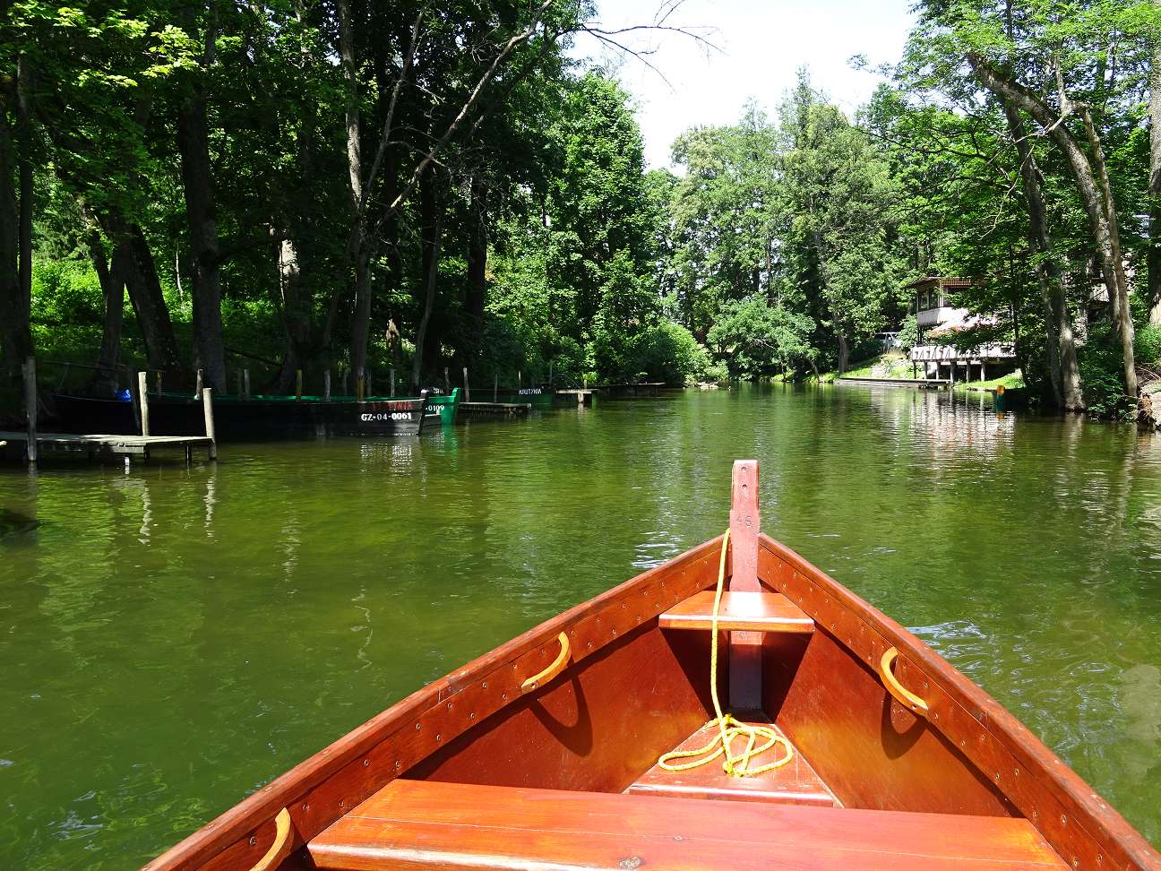 Nun setzten wir unseren Weg am Südufer des Hánczasees fort. Dieser See ist mit 108,5m Tiefe der tiefste See Polens. Das Wasser scheint sehr sauber, aber nach Angaben der Tauchbasis in Blaskowizna betragen die Sichtweiten nur zwischen 4 und 7m. Dort befindet sich auch ein öffentlicher Badestrand.