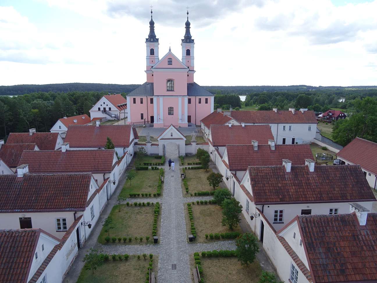 Langsam kommt man nun wieder in die Zivilisation zurück. Wigry liegt auf einer Halbinsel im Nordosten des gleichnamigen Sees. Der Parkplatz kostet 5,-Zl, aber der Besuch des ehemaligen Kamaldulenser-Klosters ist im Naturparkticket enthalten. Bis 1796 behielt das Kloster seine Funktion, bevor die Preußen die Einwohner vertrieben. Im 2. Weltkrieg wurde das Kloster weitestgehend zerstört, nach dem Krieg baute man es wieder auf. 1999 besuchte der alte Papst, Johannes Paul II. den Komplex drei Tage lang. Überall findet man Zeugnisse aus dieser Zeit. Inzwischen kann man sich in alten Einsiedeleien einmieten.