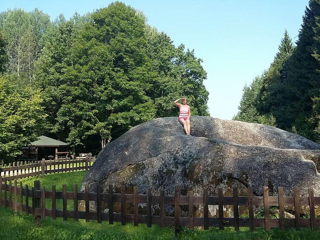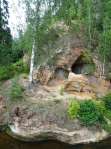 Hinter der Rehabilitationsklinik führen mehrere Wege durch den Wald an das Ufer der Gauja. Wenn man dem Weg „Gauja“ folgt und am Ufer nach links abbiegt, kommt man an ein traumhaftes Plätzchen. Hier macht die Gauja eine Kurve. Über viele tausend Jahre wurde an dieser Stelle eine Sandsteinwand ausgewaschen und der nackte Fels zeigt sich.